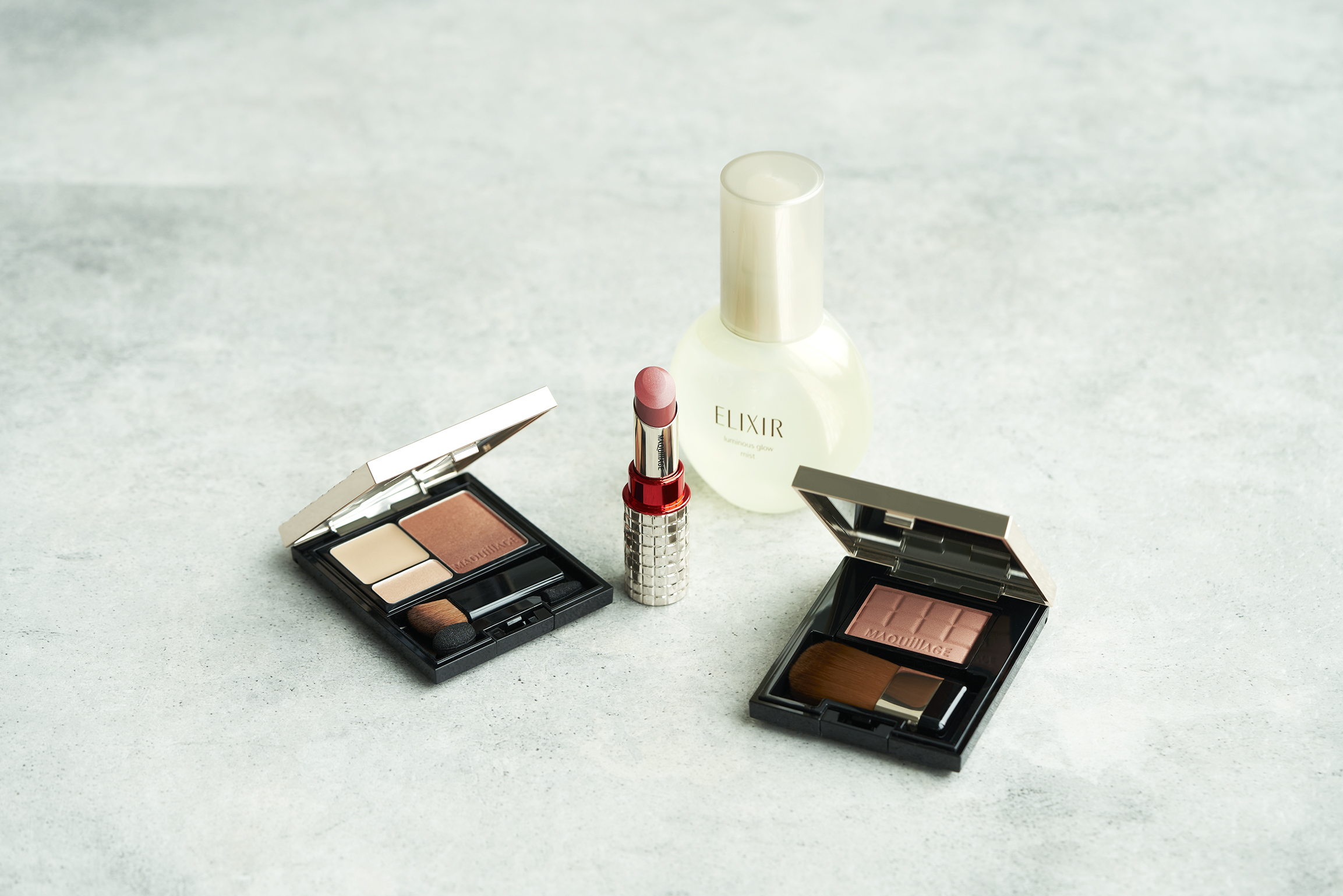 もうひとつのつやアクセントは、肌に取り入れます。透明感のある美肌の持ち主である海友さんですが、今回は、肌づくりには、みずみずしいつやをプラスしました。SHISEIDO シンクロスキン セルフリフレッシング クッションコンパクトで肌をフレッシュに仕上げた後に、エリクシール シュペリエル つや玉ミストを投入。メイクの上からも使えるきめ細やかな霧状のうるおいスプレーです。肌に2、3回ふきかけ、“つや玉”が完成。乾燥しがちな季節柄、うるおい補給もできて、肌表面になめらかで均一なハリを与えてくれる秀逸な1品です。