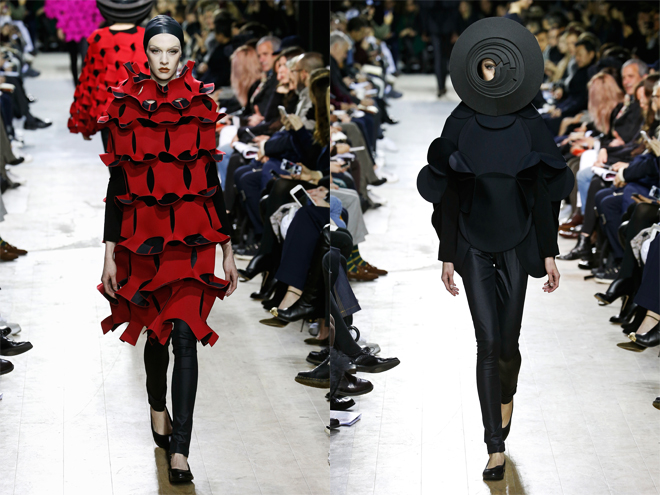 でも日本人の感覚からすると、今回のジュンヤ ワタナベの複雑で構築的なルックの数々は、単なる“オリガミ”という言葉では何とも物足りない。クリエーションに表現が追いついていないもどかしさを感じてしまうのだ。