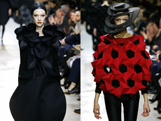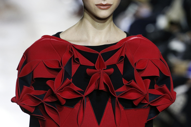 ファッション用語“origami”は、まさしく日本の折り紙から来ていて、紙のように畳まれたプリーツ技術や、ペーパークラフト感覚のディテールを指すときに使われる。