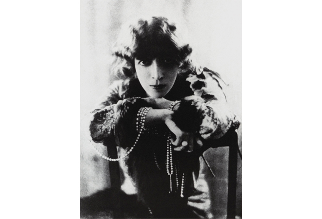 革新的なファッションスタイルにヘア&メークも引けを取らず、炎のような赤毛に、顔は白粉を塗り込んで真っ白に。木炭で縁取るスモーキーアイズの眼力は壁さえも射抜きそう。ミステリアスという形容詞では収まりきらない凄みと迫力が、ピカソや写真家マン・レイ、小説家プルースト、バレエ・リュスを率いた芸術プロデューサーのディアギレフなど、数多の才能を惹き付けた。
