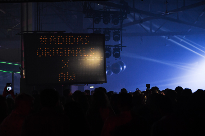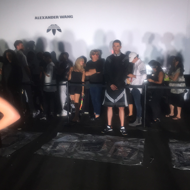 こういったショーは大抵時間通りには始まらず、30分押しくらいが通常ですが、今回は予定を30分過ぎた夜の9時半を回ってもなかなか始まらない。どんな大物セレブを待っているのかしらと思っていたら、歌姫マドンナが黒いスウェット上下で登場。ショー終了後に、謎めいたムービーをバックに総勢62名のモデルが全員、マドンナと同じ黒のTシャツで現れて……。そう、サプライズな演出で、ワンとアディダスのコラボレーションが発表されたのでした。ちなみにキャンペーンに登場するのがマドンナの16才の息子、ロッコ・リッチーとのこと。