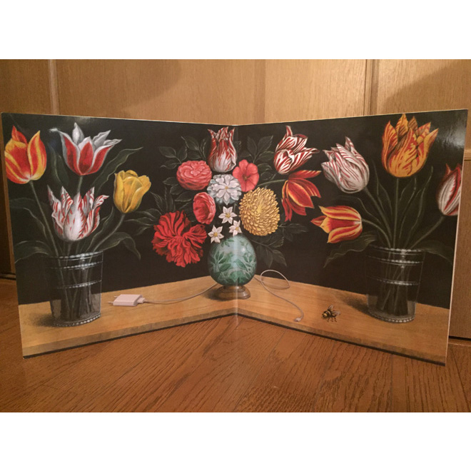 ミラノのホテルに到着して、フロントでどさっと手渡された招待状の束の中に、一通、やけに大きな封筒がある。実はそれが今季のグッチからの招待状。蛇が自らの尻尾をくわえてサークルを作る古代の紋章“ウロボロス”をデザインしたグッチのロゴが大きくプリントされた茶封筒を開けると、ジャケットには「一体俺たちはこの未来をどうしようというのだろう?」という言葉。ジャケットの内側には、花の活けられた花瓶が3つとその間に無造作に置かれた携帯の充電ケーブルが西洋絵画風のタッチで描かれていた。
