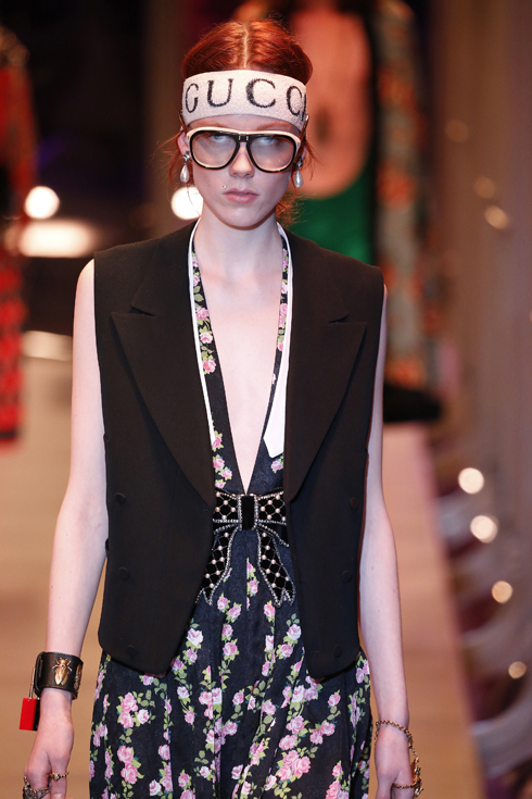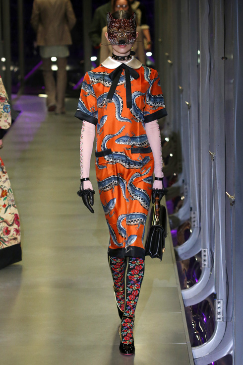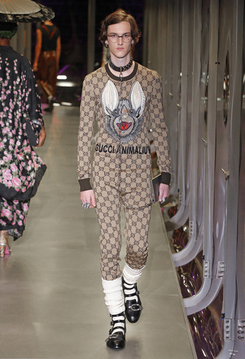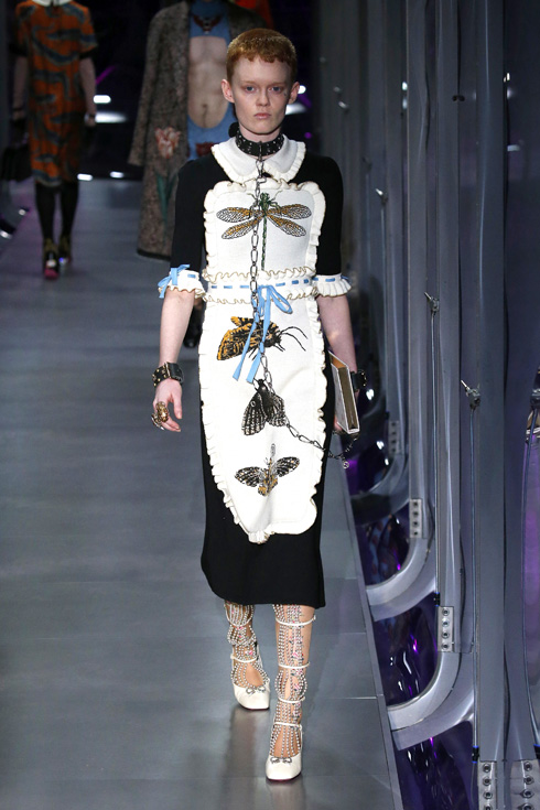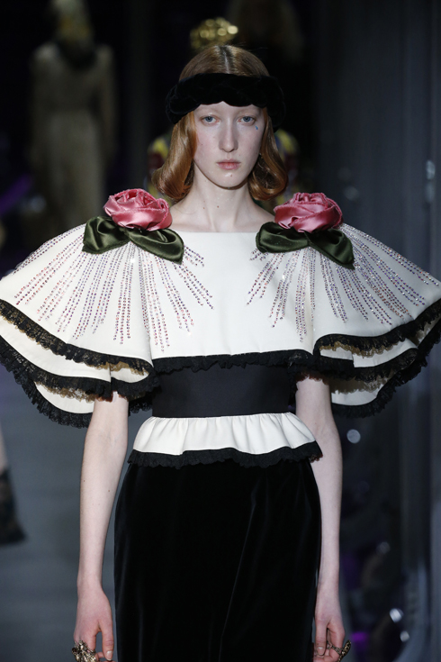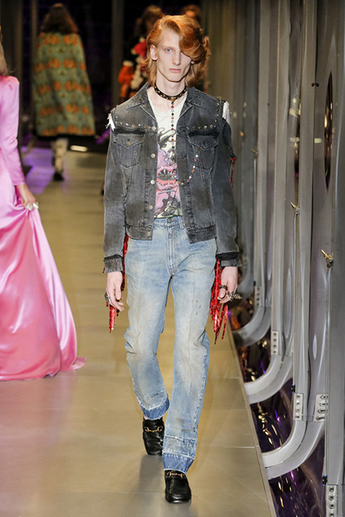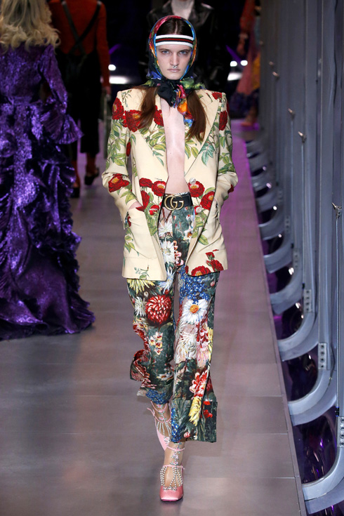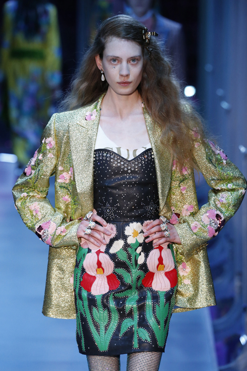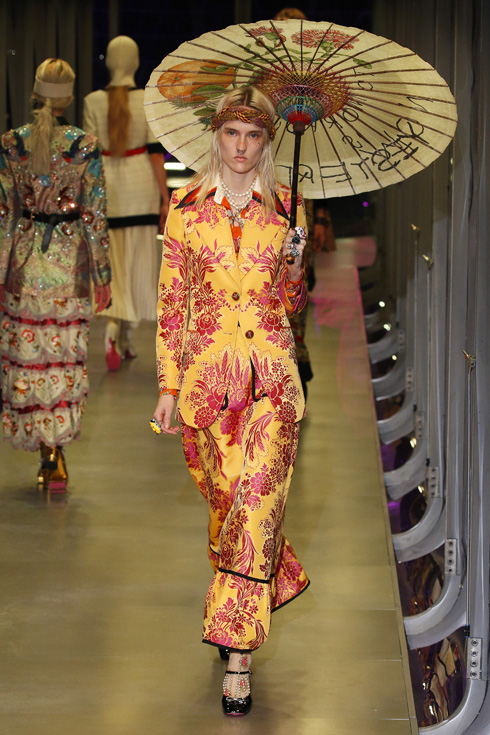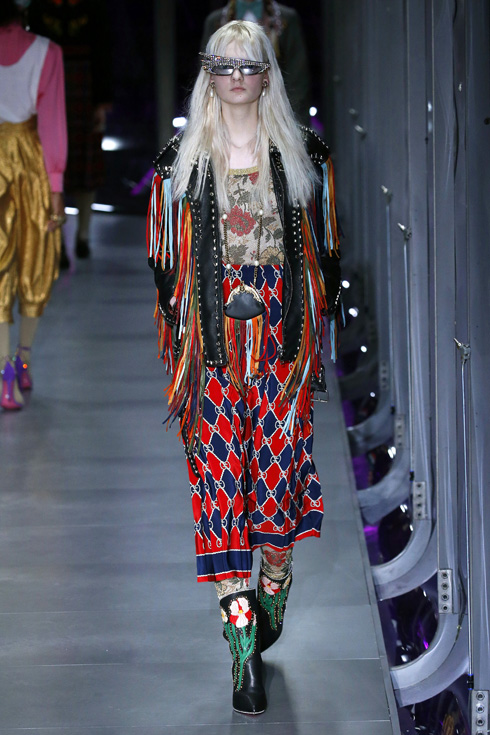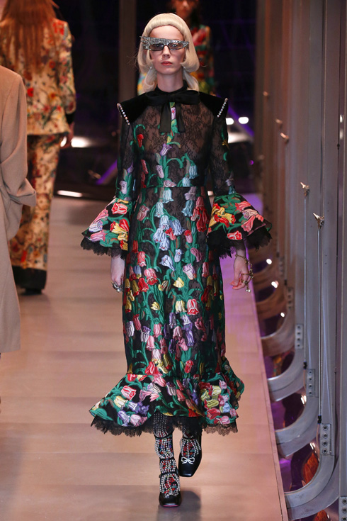 さて、今回はメンズとレディースが統合された初のコレクションで、総点数はなんと119ルックにも及ぶ。ミケーレが織りなすグッチのファンタジーを皆がかたずをのんで見守った。