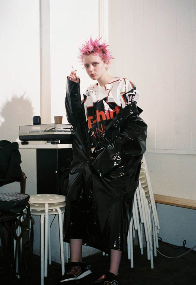 ファンタジーとか知的とか、勝手に思い描いていた物静かな少女趣味イメージからは想像もつかないような、サブカルチャーの魅力がぎゅっと凝縮したエネルギッシュな服。一風変わった個性はもちろん、その服の背景に潜む好奇心を掻き立てるストーリーがこのブランドの魅力なのだ、と直感的に感じた瞬間だった。
