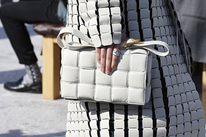 さらに、ブランドのルーツであるイタリアらしさもボッテガ・ヴェネタが継承すべきヘリテージの一つで、欠かさずデザイン要素にプラスしている。今季はバッグのデザインに、ミラノの街中に見られる建築物のシェイプや、ドアの装飾モチーフ、街灯のシルエットを取り入れた。