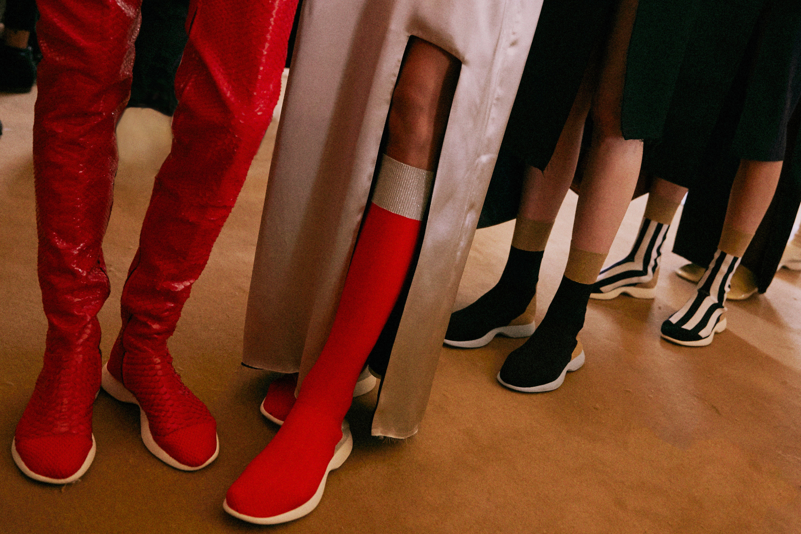 ところで、この靴下風シューズ、続く2016−17年秋冬でも、様々なブランドで、バリエーションが提案されている。靴下のようなストレッチレザーブーツ、靴下素材のスリッポン、サンダルの中に靴下が内蔵されているもの(残念ながら洗濯は不可)などなど。先陣を切ったアクネ ストゥディオズも春夏での評判を受けて、秋冬は新色を追加した。