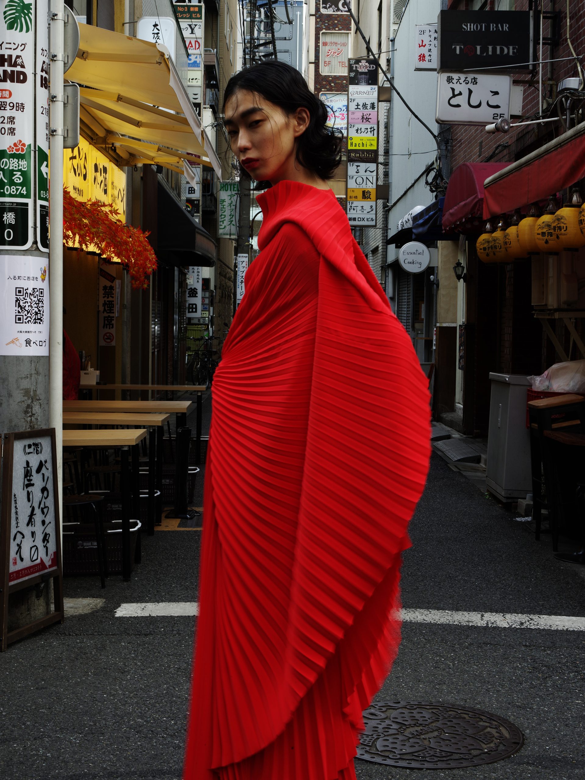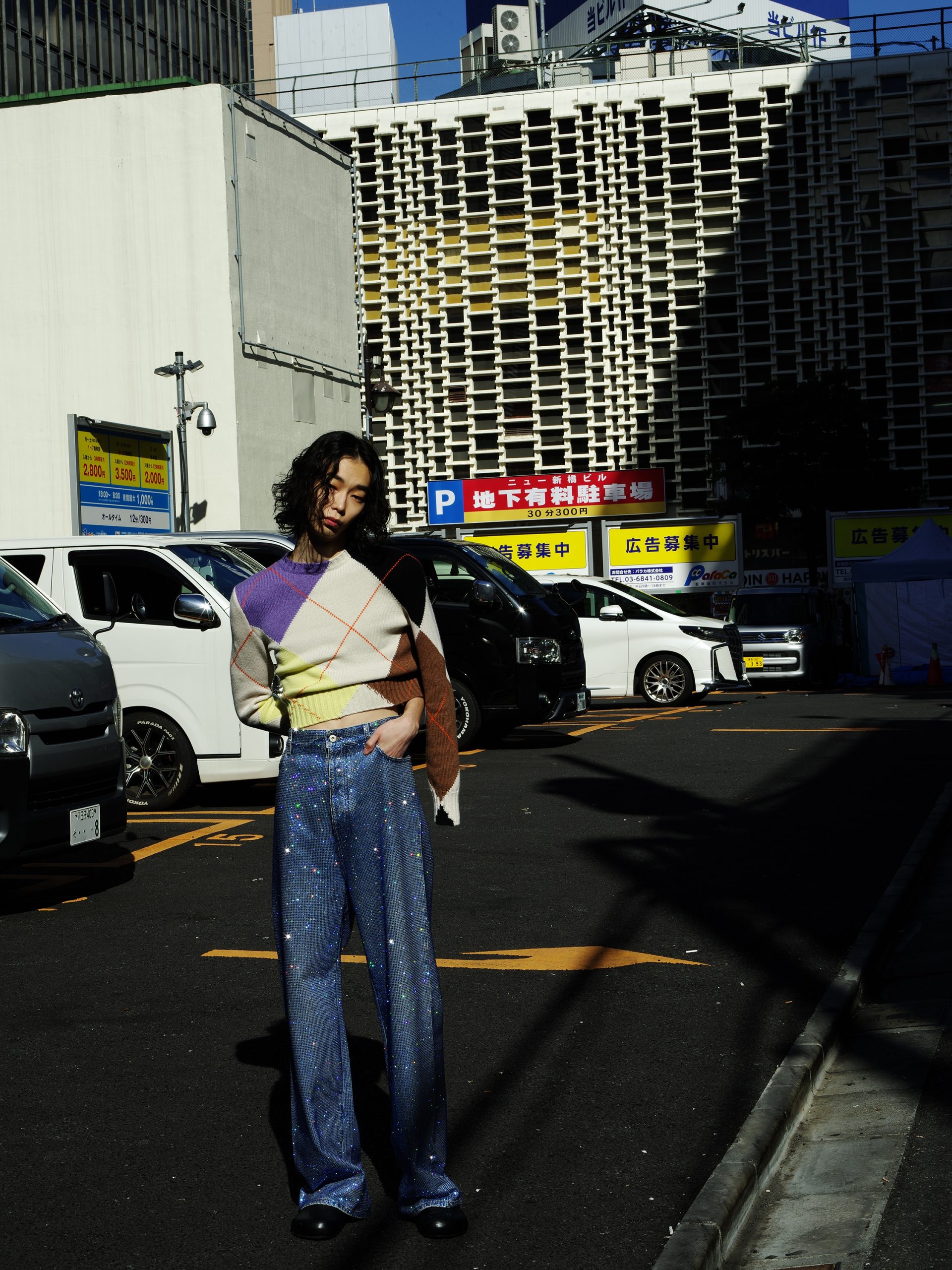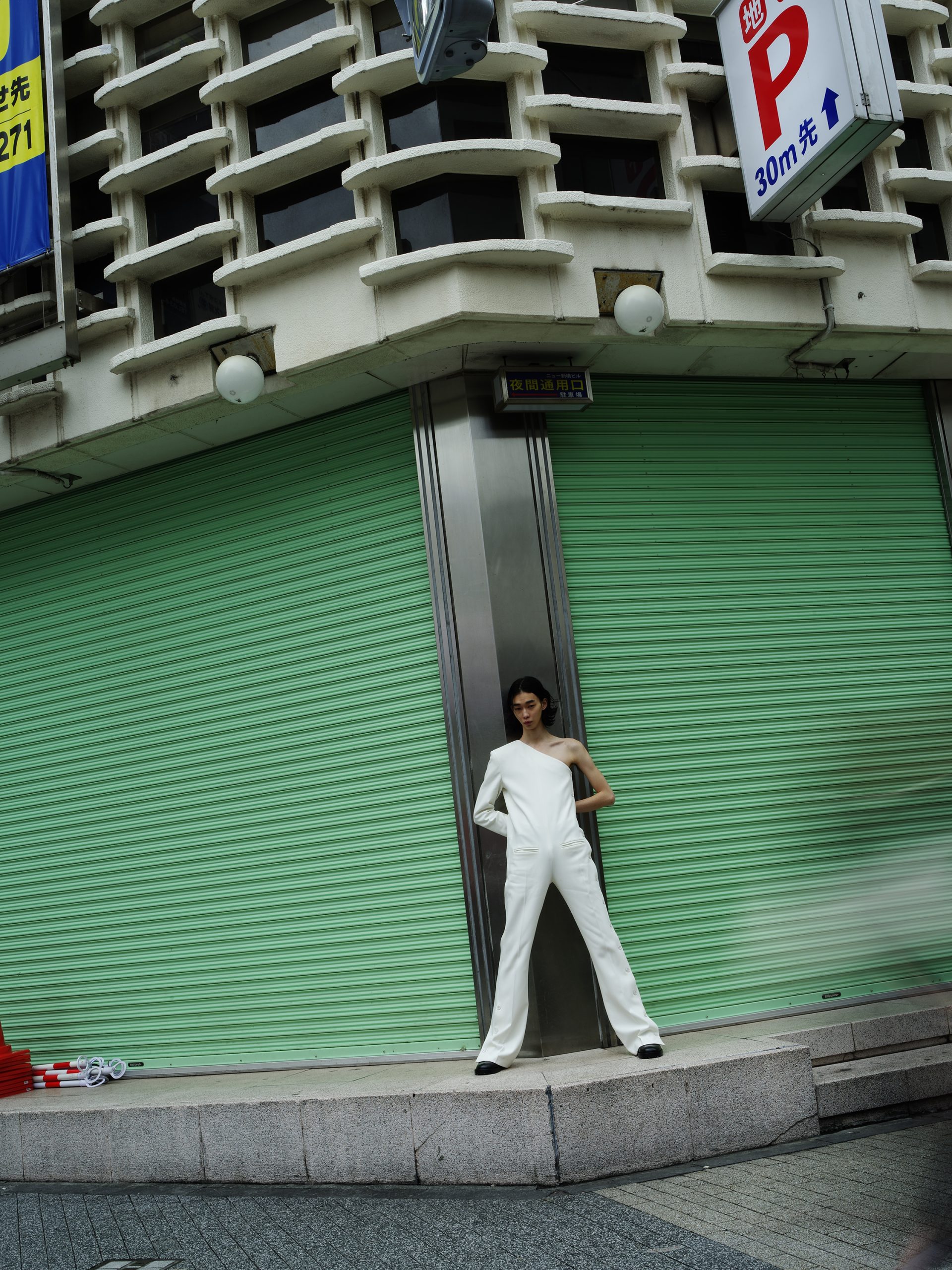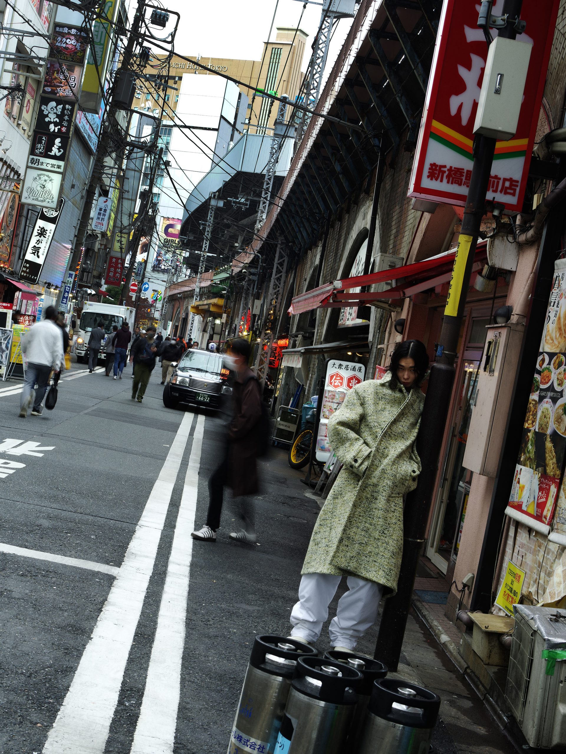 「モードのカタチ#1」は、資生堂の本社にほど近い、相反するものが共存する街、新橋の繁華街が舞台です。一見モードとは距離があるように思えるこの場所を背景に、社会と密接な関係にあるモードの本質に迫ります。混沌としたこの新橋の日常に垣間見る、ファッションがいかに時代の空気を映し出し、私たちの生活や美意識に影響を与えているのかを探ります。
