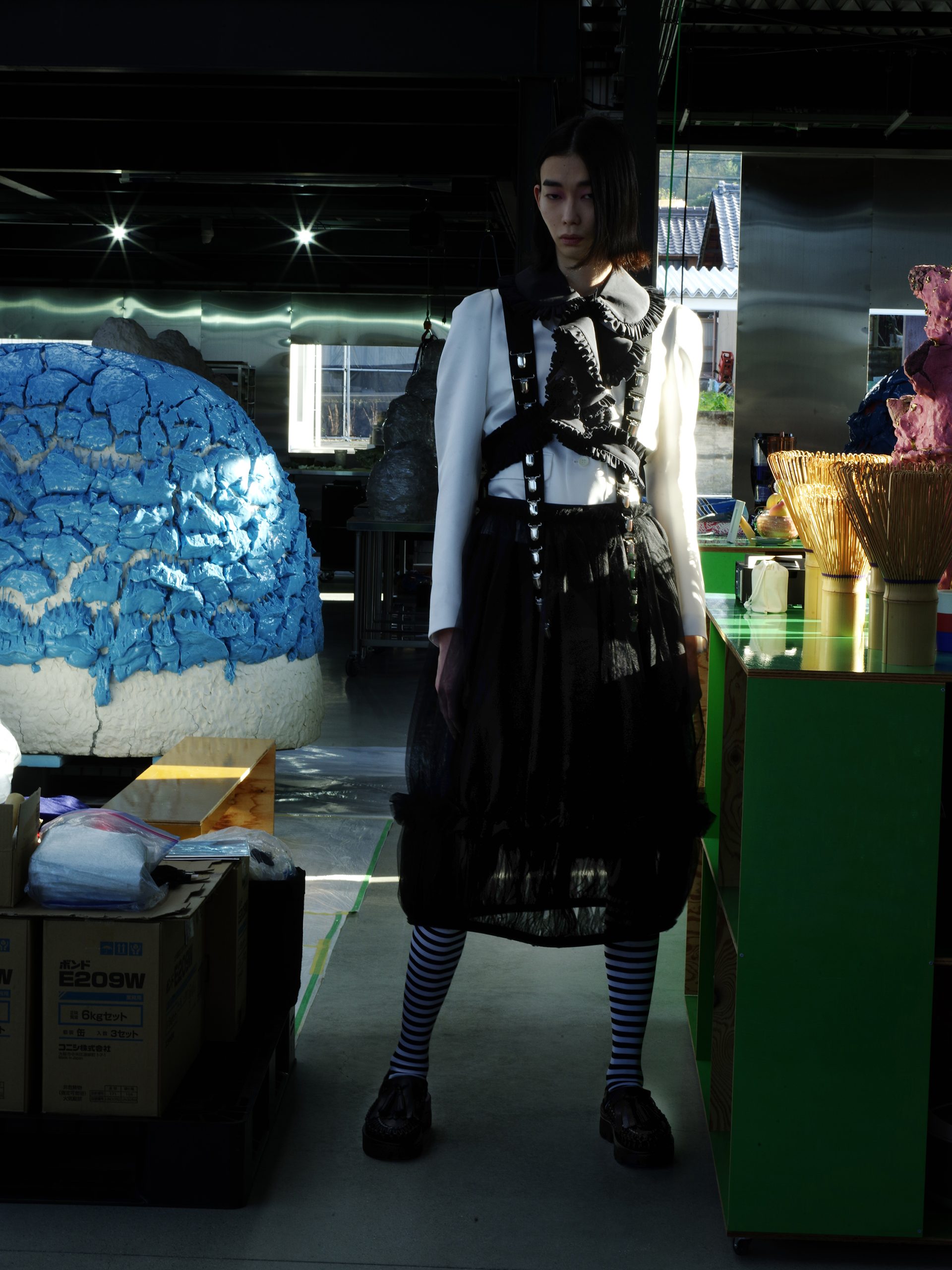 「モードのカタチ#2」は、陶芸に留まらず現代アートの分野でも注目される桑田卓郎氏のアトリエが舞台です。LOEWEやノワール ケイ ニノミヤなどのファッションブランドとのコラボレーションにはじまり、現代ファッションシーンに新たな刺激を与えている桑田氏の作品。これらの作品が生まれる、クリエイティブなエネルギーに満ちたアトリエで、ファッションとアートが交錯し、現代のモードが持つ新たな可能性と創造を模索します。
