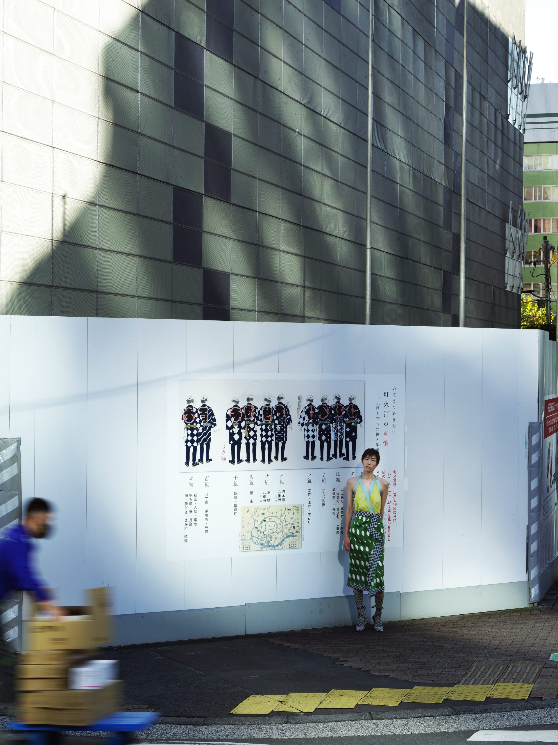 「モードのカタチ#3」は、かつて江戸城の城下町として芸能で賑わった東銀座が舞台です。大名屋敷や料亭がオフィス街に姿を変えた現代でも、人々の心を楽しませてきた矜持は街中に継承され、さらに進化し続けています。