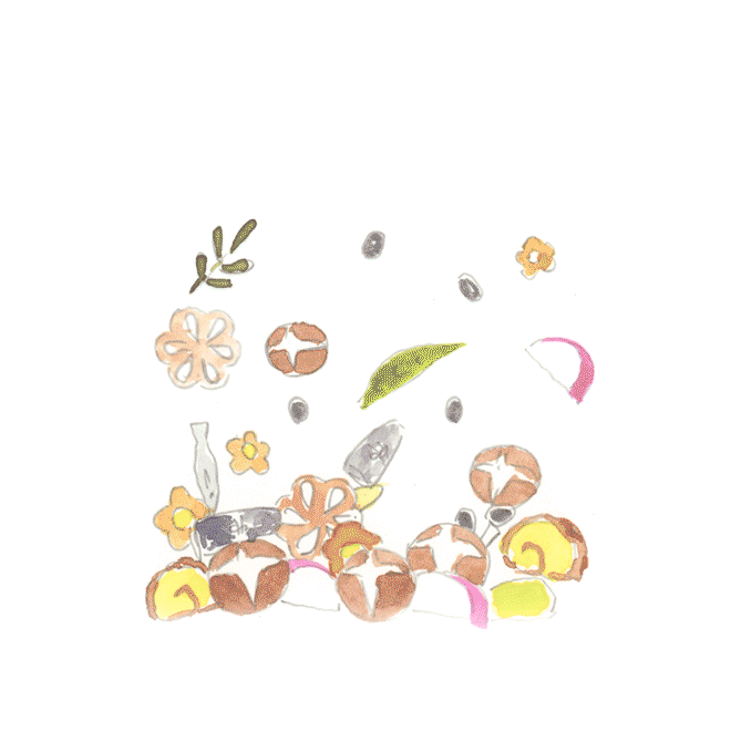 食べ物デッサンの画集「La collection gastronomique」(HeHe / ヒヒ)、ピエール・エルメ・パリ・ジャポン「Macaron Baby」のデザインを手掛ける。