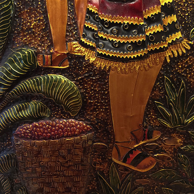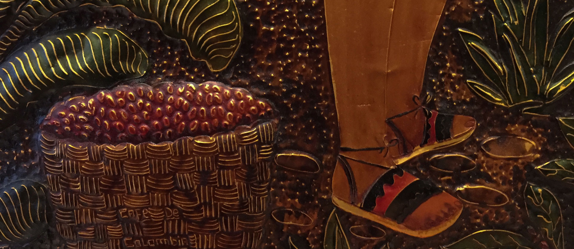 カフェーパウリスタは現在銀座8丁目にある。関東大震災後にカフェープランタンが移った場所だ。半円につきだしたベージュの庇が愛らしい。ビルの1、2階にゆったり客席が並んでいる。ドアを開いて店内を見渡してまず目に入ったのは、コーヒー農園の労働者を描いた銅版画だった。全体に重厚な雰囲気がただようが、彩色は鈍く光りながら多彩で、美しい。