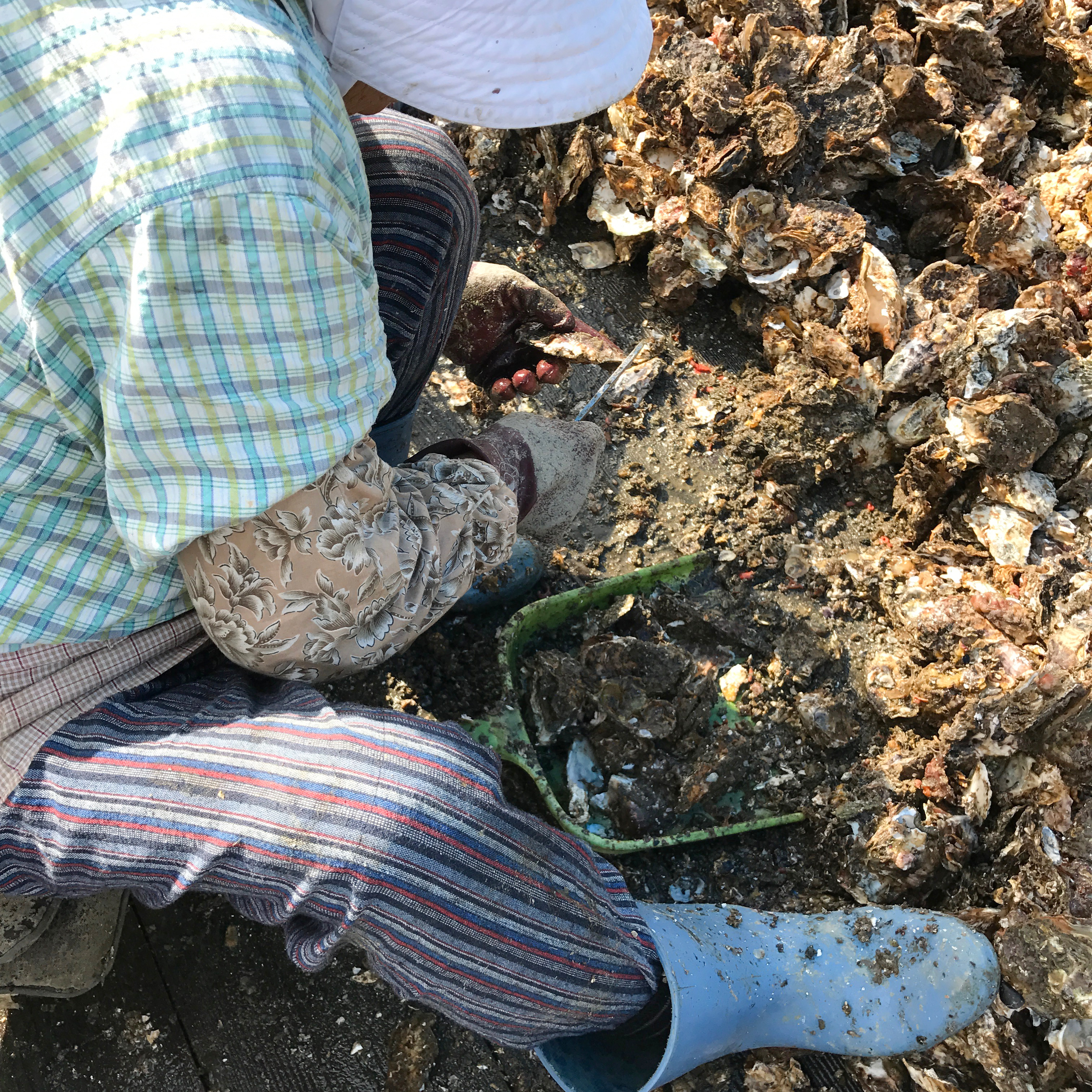 家田さんは真珠貝の掃除を機械化していたが、美代子さんの真珠貝掃除は船の上での手作業だった。今こうして話す間も片時も止まらない美代子さんの手。カキについた小さな貝やホヤを素早くかきおとす仕草はたぶん、真珠貝を掃除していた30代半ばの美代子さんの手の動きとつながっている。