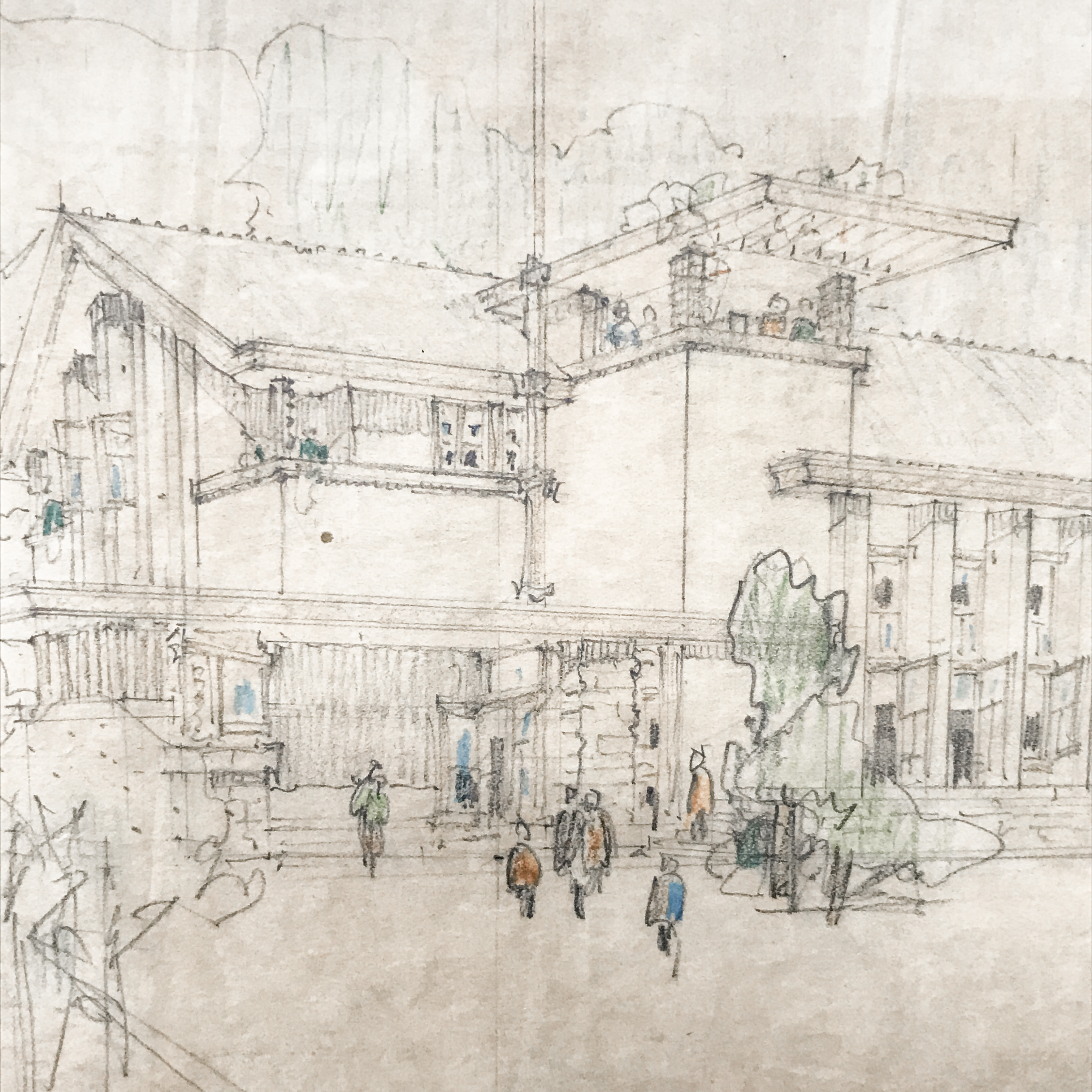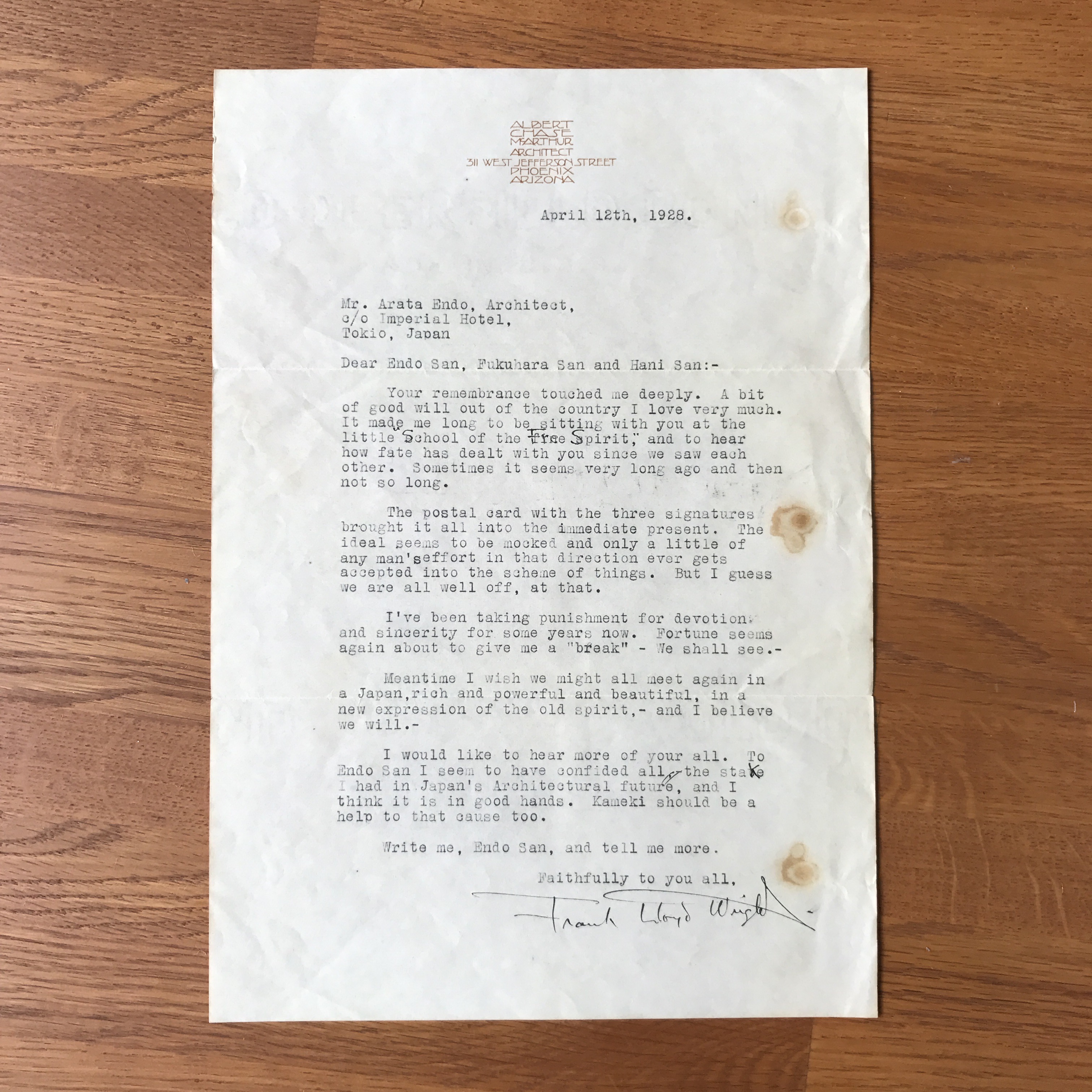 新にとっても、ライトにとっても建築は、周囲の自然とそこで営まれる人の暮らしに思いを致して、生み出すものだった。最初から壊す予定のようなものを作ることは論外だったに違いない。「壊す予定」、それは住む人の視点でなく、言うまでもなく為政者の視点である。