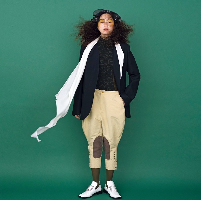 *ジャケット¥165,000 *参考価格/GIA STUDIOS(THE WALL SHOWROOM)、トップス¥53,900/Wolford(The SAZABY LEAGUE)、パンツ¥31,900/STUDIO marionette、ヘアアクセサリー¥53,350 /STEPHEN JONES(DOVER STREET MARKET GINZA)、シューズ¥44,000/lost in echo(VIVIANO)、タイツ スタイリスト私物