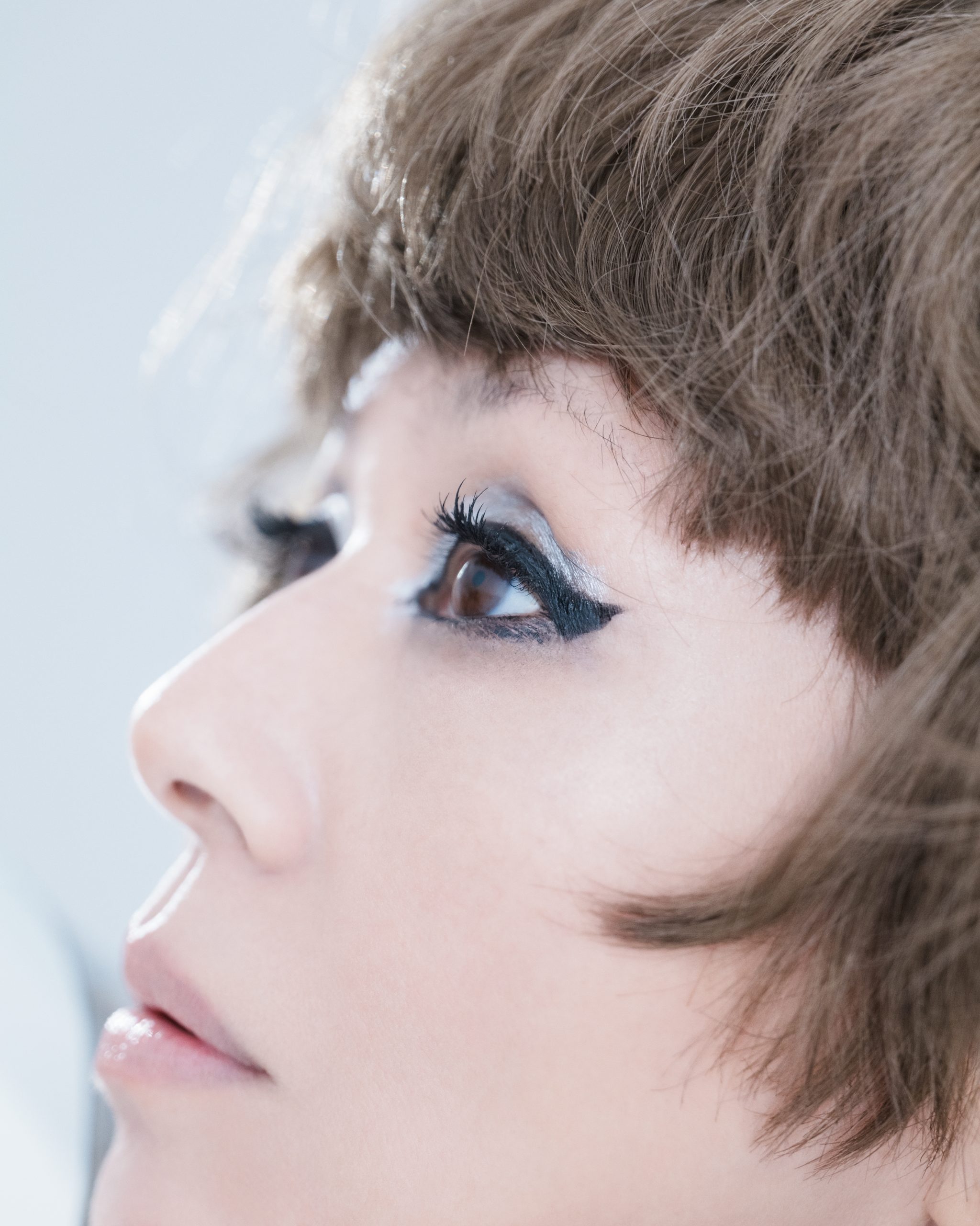 今回は、少し大胆に遊ぶメイクにトライしました。正確にアイラインを引いたり、きれいなグラデーションアイシャドーにするというよりは、メーキャップが重たくならないように、ラフさを出してバランスをとり、小泉さんのお顔立ちがそのまま残るように仕上げました。