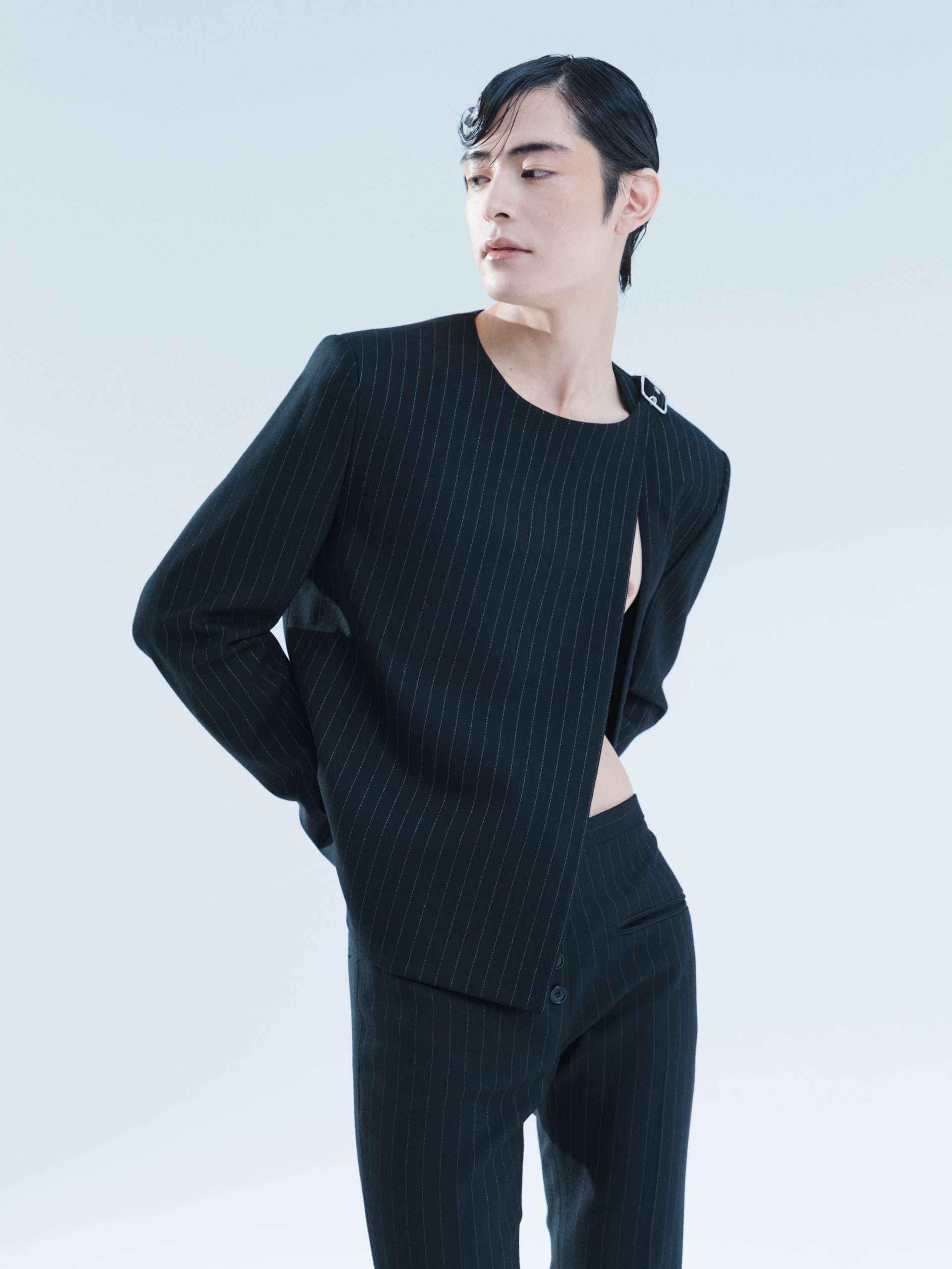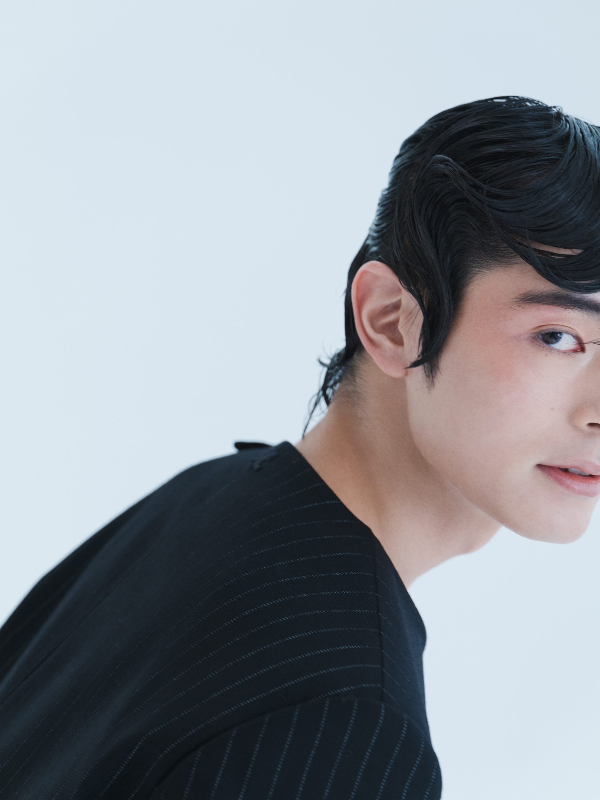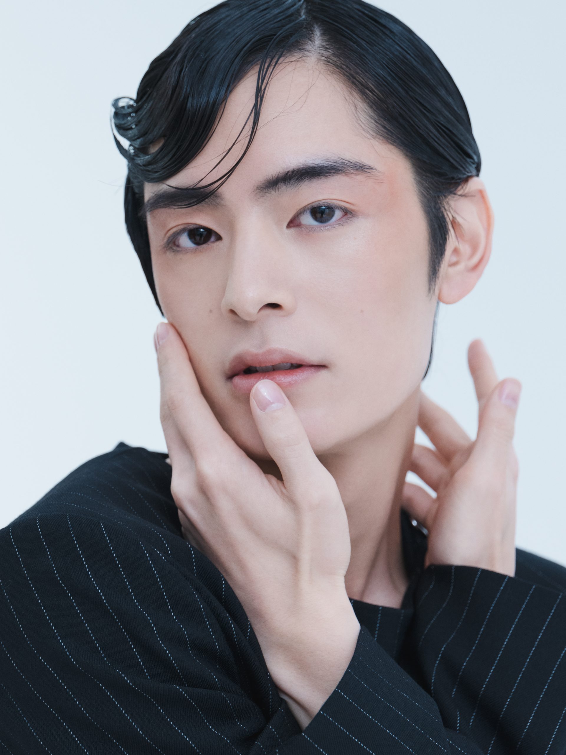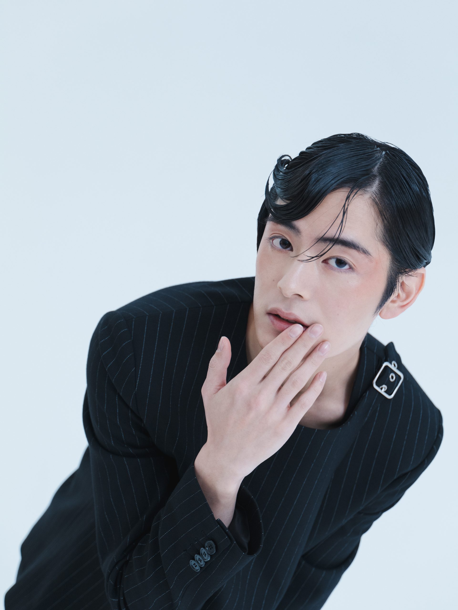 塩野瑛久(以下塩野):普段こういう挑戦的でクリエイティブな雰囲気のヘアメイクの撮影はあまりなく、撮られるときのポージングとかも、どういう風にしたらいいかなって探りながらだったのですが楽しかったです。