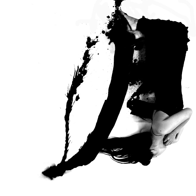 その中で一番時間がかかるのが、“髪”。髪も身体の一部なので、これを最大限有効に使わない手はない。筆はご存知の通りさまざまな動物の毛からできている。この作品で使用する特大筆は馬の毛。長く伸ばした黒髪は、毛筆による墨の軌跡に見立てる絶好の素材であり、有機的な曲線美も大きな魅力となる。髪だけで文字の一画を表現することもあるので、私の中で“髪”は表現するための第二の筆として、とても重要な役割を果たしてくれている。この作品シリーズを制作し続けるかぎり、長く伸びた髪を切ることができないのである。