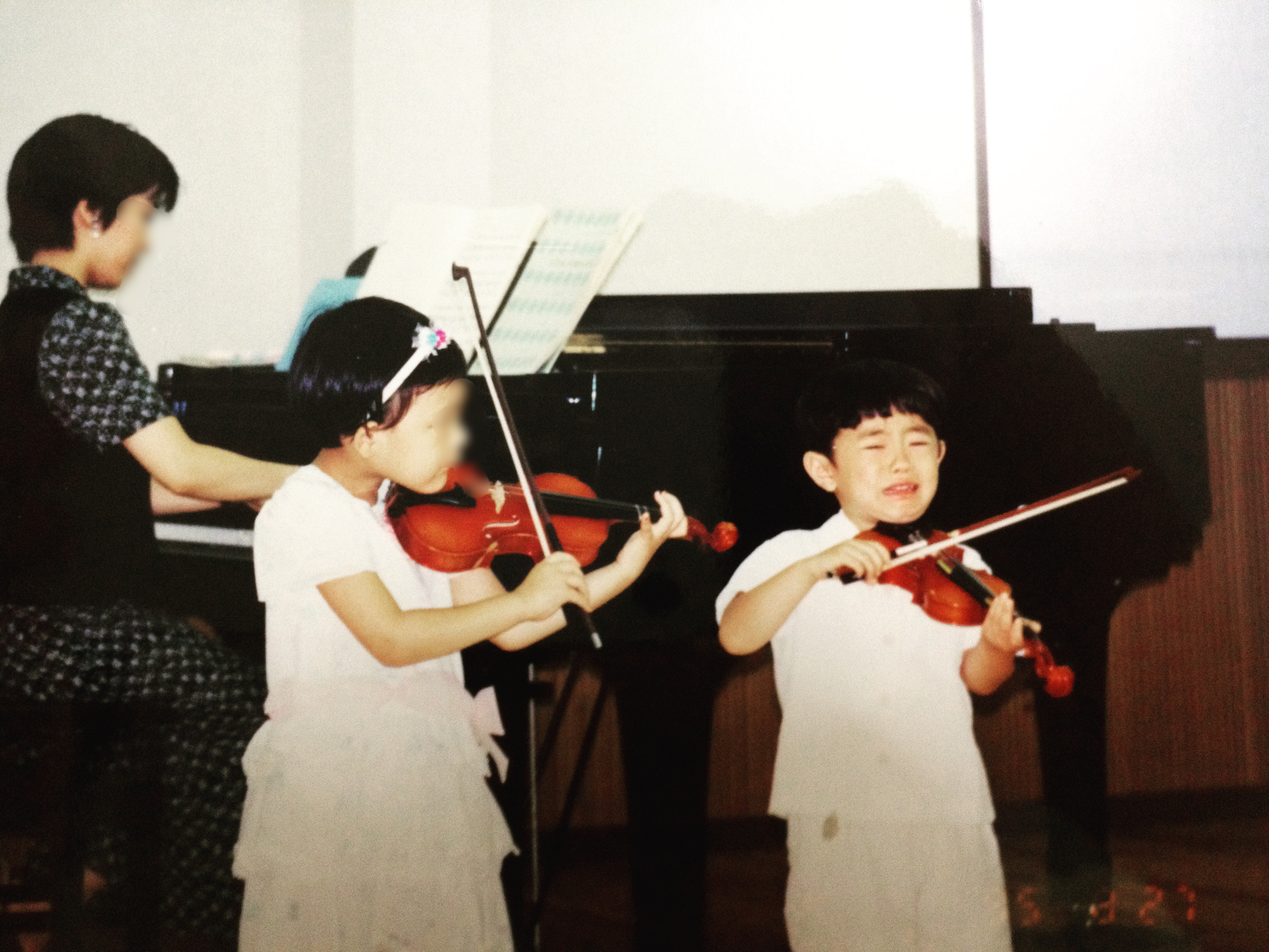 4歳、ヴァイオリンの発表会。好きな女の子の隣でメヌエットがループしてしまう。終わりたいのに終われない。えんえんと泣きながら演奏を続けた。