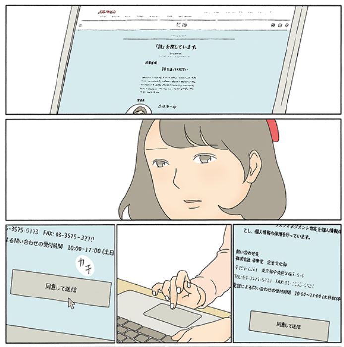 資生堂さんの若い女性向けブランドのひとつ「マジョリカ マジョルカ」のウェブサイトに詩を執筆したことも印象深い。吸血鬼の少女がばら色チークを手にしたら、というストーリー。スマホが普及し始めた2014年当時、スクロールすると、イラストが動き、物語が展開する。スマホ画面に映える新たな読書体験を提示した。マジョリカ マジョルカのウェブは、若手のクリエーターや作家を積極的に起用するため見逃せない企画が多かった。