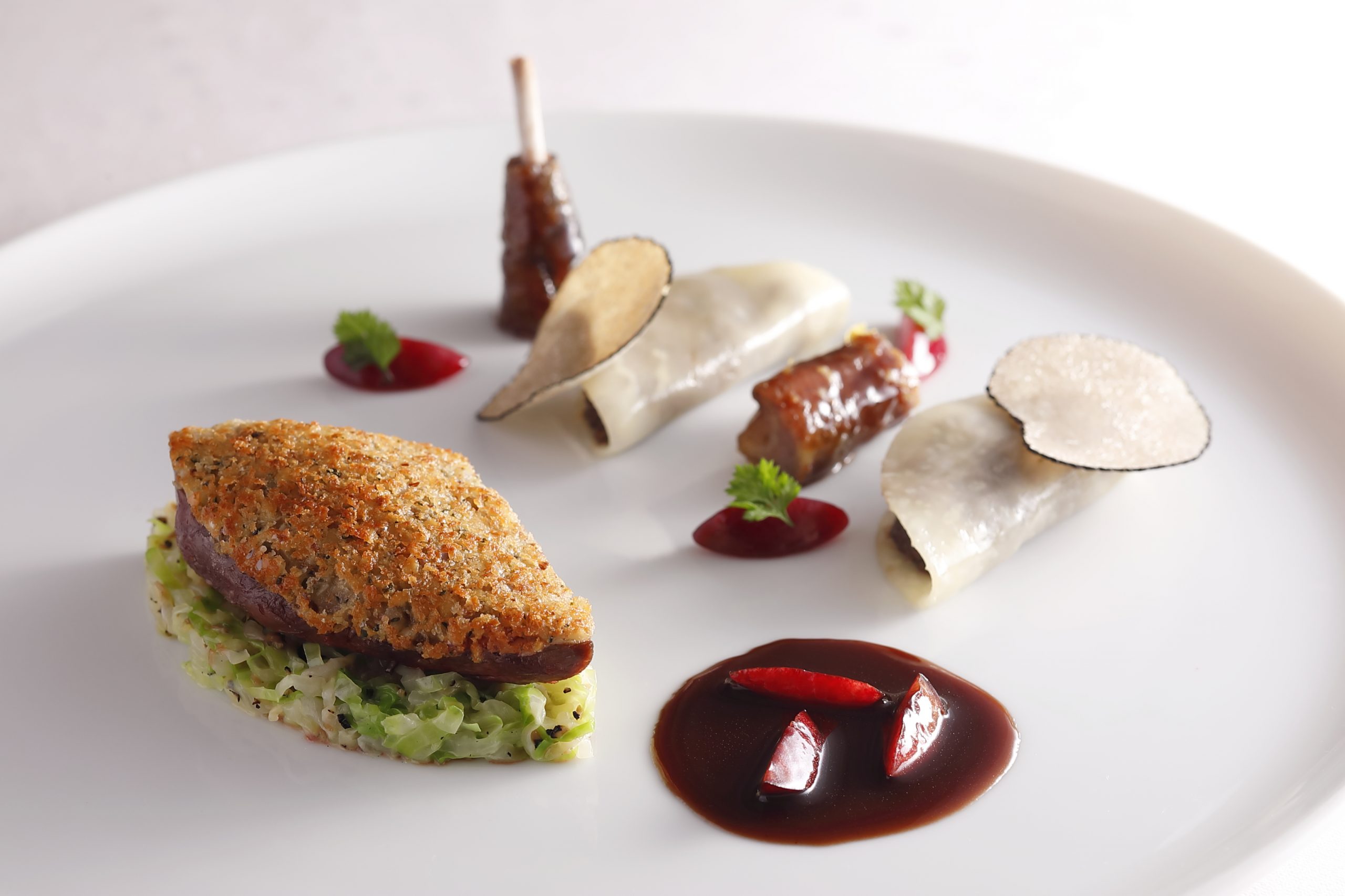 時に取材する側として、時に客としてロオジエに通う中で、もっとも忘れがたいのが、ロオジエを飛躍させたジャック・ボリー氏をはじめ、ロオジエに関わる多くのプロフェッショナルたちが異口同音に語る、「料理は4割、それ以外が6割」という言葉だ。4:6であったり、3:7であったり、割合は人それぞれだが、これは何も料理を軽視しているわけではない。料理はもちろん店の核心であるけれど、料理から内装、サービスまでが交響曲を奏でるように──あの楽器、この奏者がよかった、ではなく──それぞれが拮抗しつつも調和し、最終的に素晴らしいコンサートだった、という感動をこそ味わえるのが、ロオジエの真骨頂なのだ。