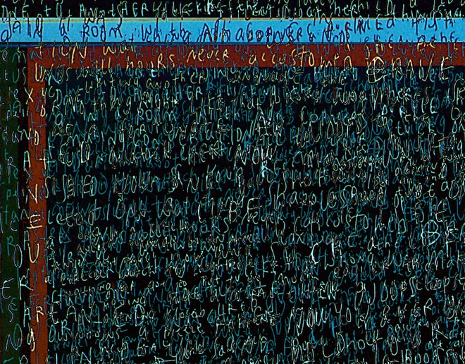 当時私のパソコンは、こちらの画面でマーク・ボスウィックの展示風景をみて、あちらではクリスチャン・ニャンピータの資料を開いている、という状況だった。その行為を経て、いくつかのワークショップを通して近隣の住民たちとかかわったあとに仕上げたニャンピータのコラージュと、美術館やギャラリーという場所に作品が展示されるときも自宅の一角のような親密な空間をつくってしまうマークの展示に、似た要素があるな、と気がついた。