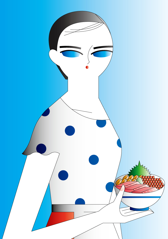 東京都在住。ファッションをテーマに女性を描くことを得意とし、シンボルマークのような図形的描写とシンプルな色使いが特徴。主な仕事に、銀座三越ウインドウディスプレイや表参道ヒルズシーズンヴィジュアルなどがある。