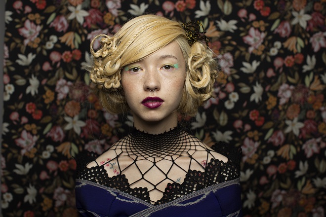 日本の伝統色を自身で調合した色のメイクで表現しています。