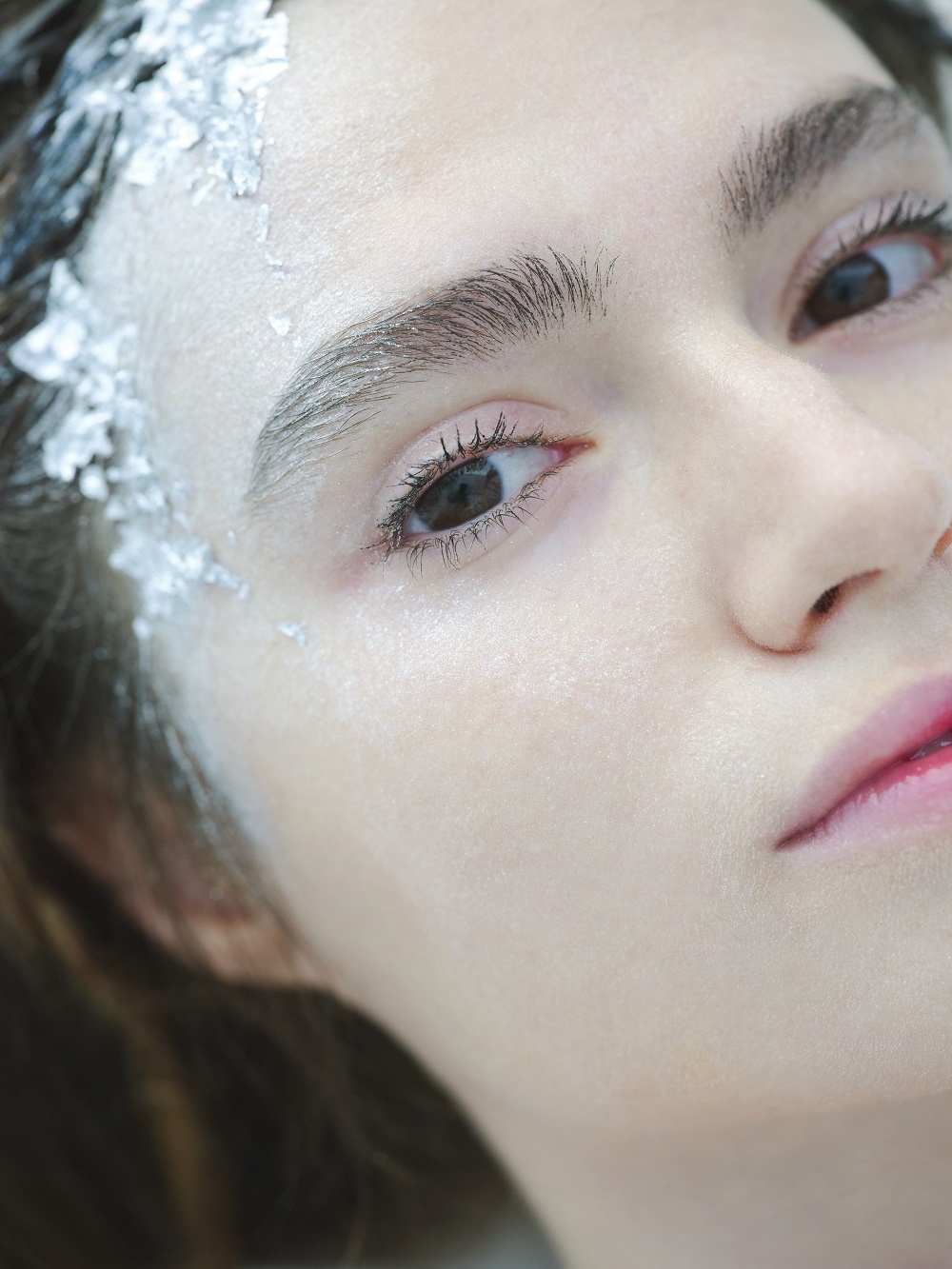 第二十回は、香川智之さんの作品「trust≒mistrust」です。常にその言葉や状態の対になることを考えるという香川さんは、「信頼」ということを多角的に考察し、自身を写す鏡でもあり、とても不確かなものでもある”水”をキーワードに作品を制作しました。きらめく霜、降りそそぐ霧、水面の輝き…水のあらゆる姿をメーキャップでみせています。