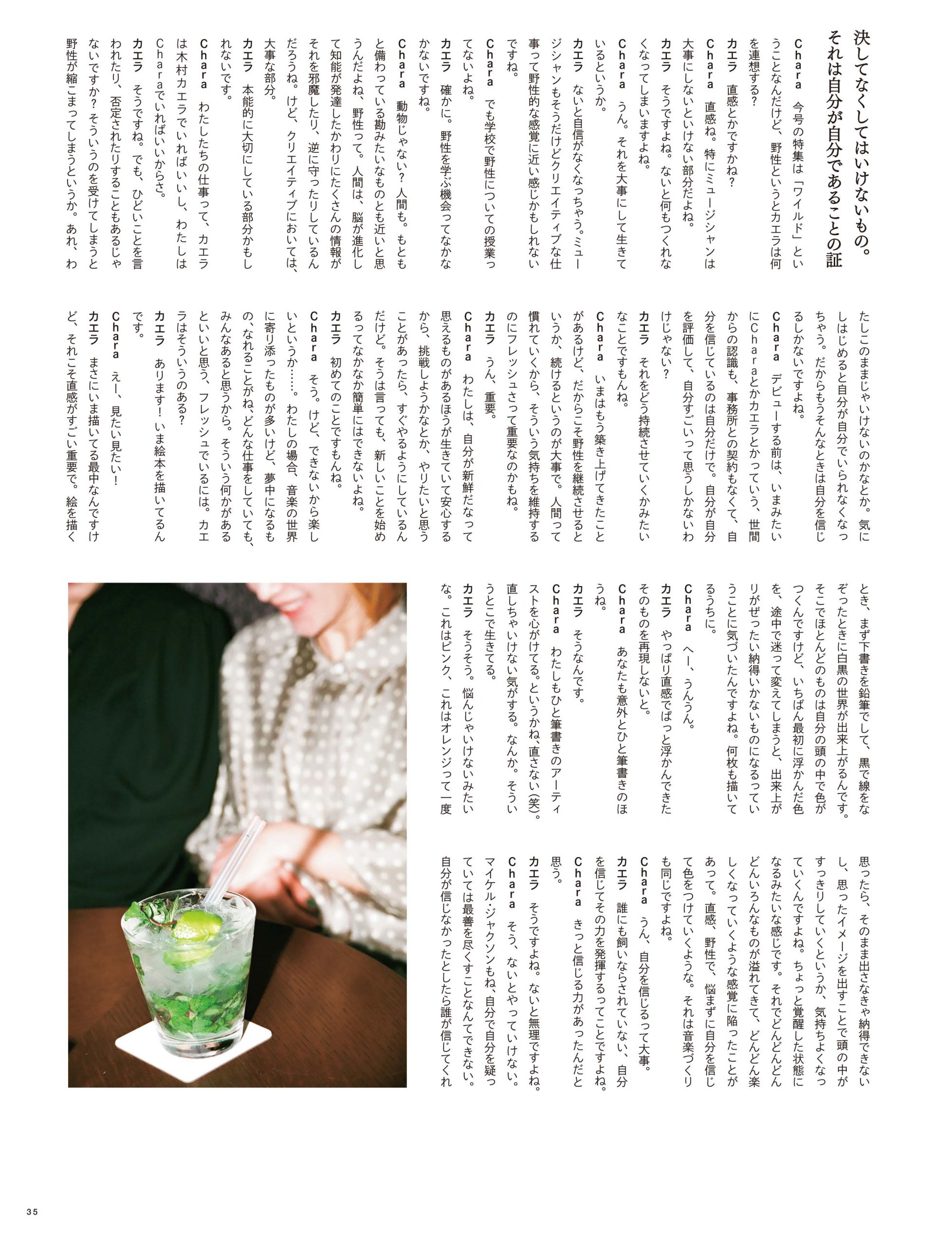 季刊誌『花椿』で連載している「サロン・ド・バー 花椿」。アーティストCharaさんがママとなり、個性あふれるお客さまをお迎えし、ディープな会話を繰り広げる対談連載です。この連載の一部を、WEBで特別公開します!