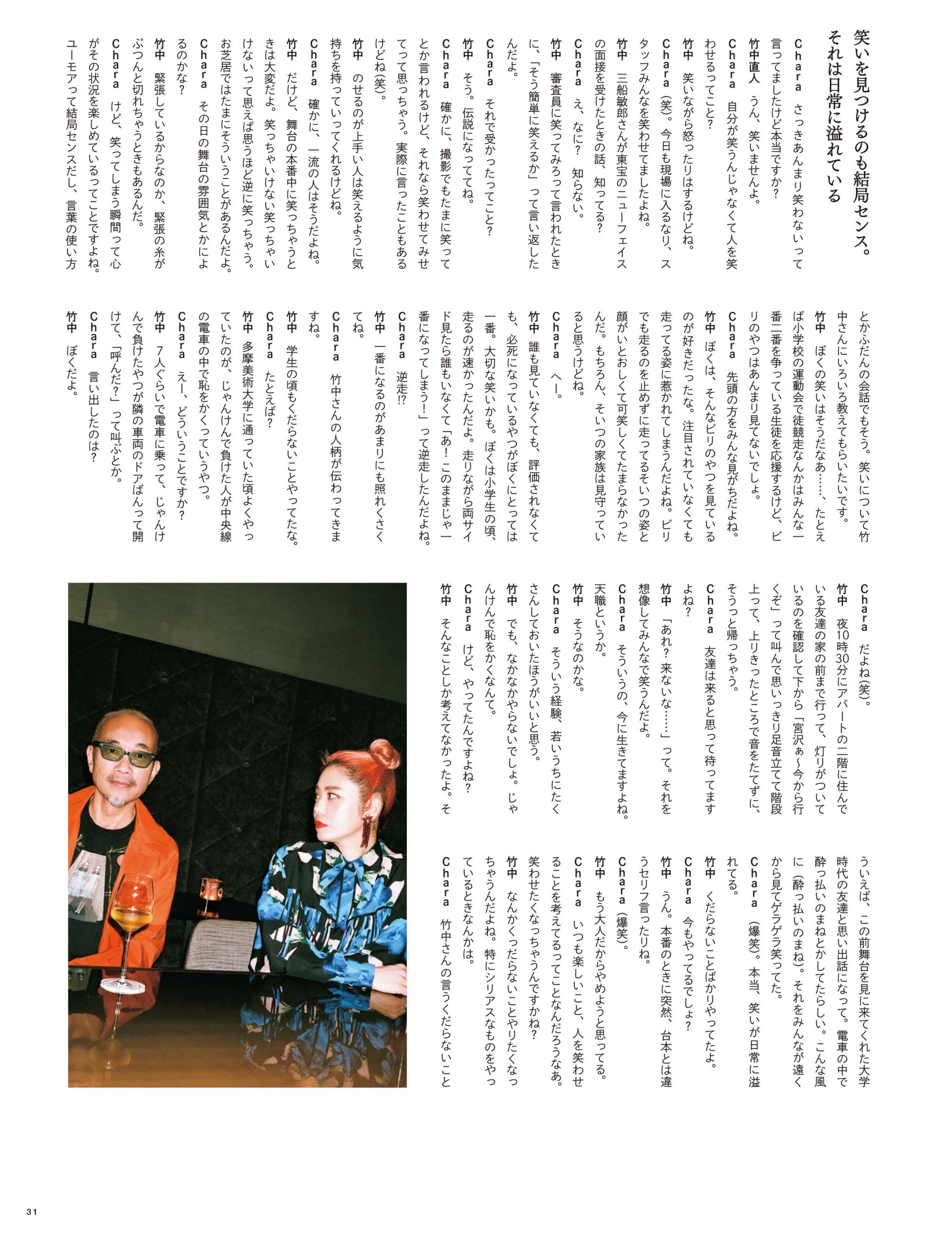 今回は、「笑いはパワー」をテーマに誌面いっぱいに笑顔があふれた特集号、2018年秋号(No.820)に掲載している、お客さま 竹中直人さんの回です。このとき久しぶりに再会したというおふたり。”笑い”の話について盛り上がりました。