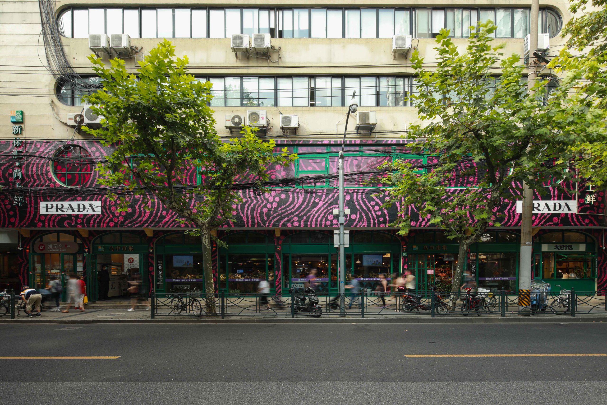 また今年9月末から10月初旬にかけて、ローカルな食品市場に現れたプラダのポップアップストアも話題となりました。プラダが世界各都市で行っているFEELS LIKE PRADAという2021AW広告キャンペーンで、上海で選ばれたスポットは「烏中市場」。周辺には、近年、上海で最も注目されているショップやレストランが集まっています。プラダはモデルを一人も用意せずとも、ブロガーやファッショニスタが自発的に集まり、ブランドのキャンペーンVI(ヴィジュアルアイデンティティー)カラーの包装をあしらった果物や野菜を持って写真を撮っていました。