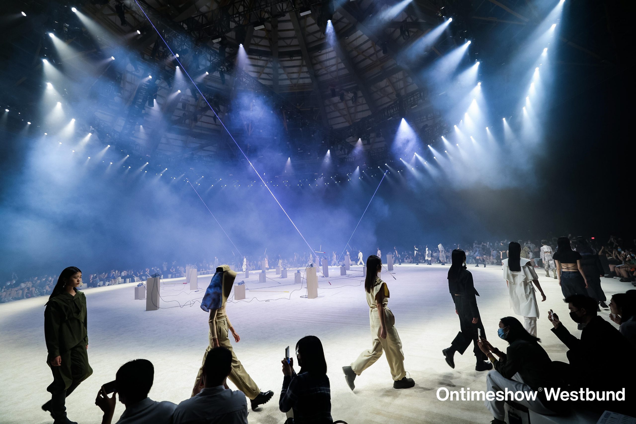 ここで最初に行われたのは、国際的な振付家の沈偉(Shen Wei)による公演。沈偉は『易経』に記された64の卦辞(かじ *占いのひとつで儒教の基本経典でもある易で用いられる基本図象の説明)をもとに、円形空間の内側を64の四角いブースに切り分け、音響システムを上部に平行に配置。観客が舞台に溶け込めるようなユニークな視聴覚感を演出しました。ファッションウィークでもこの空間は多くのショーで使われ、モデルが観客の前後にある円形の通路を歩くという、非常に臨場感のあるスタイルもありました。これはパリのグラン・パレでのショーに少し似ていますね。