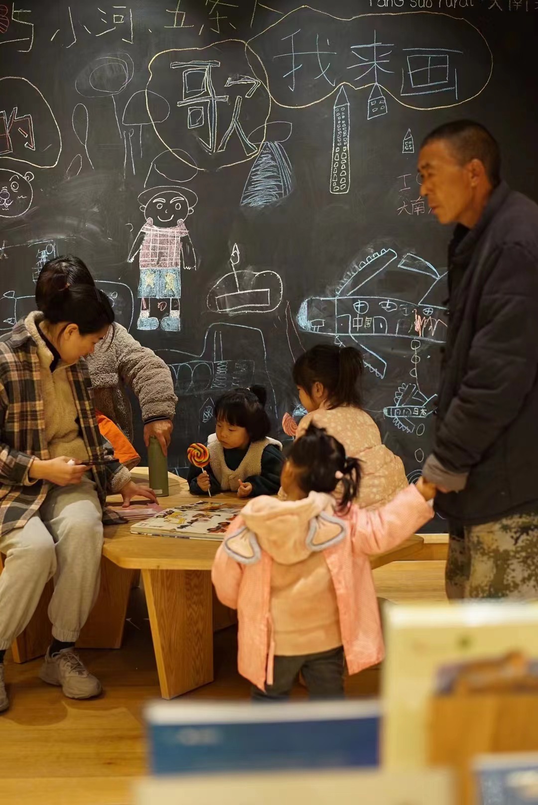 僕が所属する方所は、「方所郷村文化」を全国で初めてこの地で展開しました。そこは書店、カフェ、展示ルーム、そして村の子供たちが参加できる「大きな黒板」を組み合わせたインタラクティブな空間です。地元の作家の作品だけでなく、時事的な話題や子供に焦点を当てた読書カテゴリーも大きな割合を占めています。