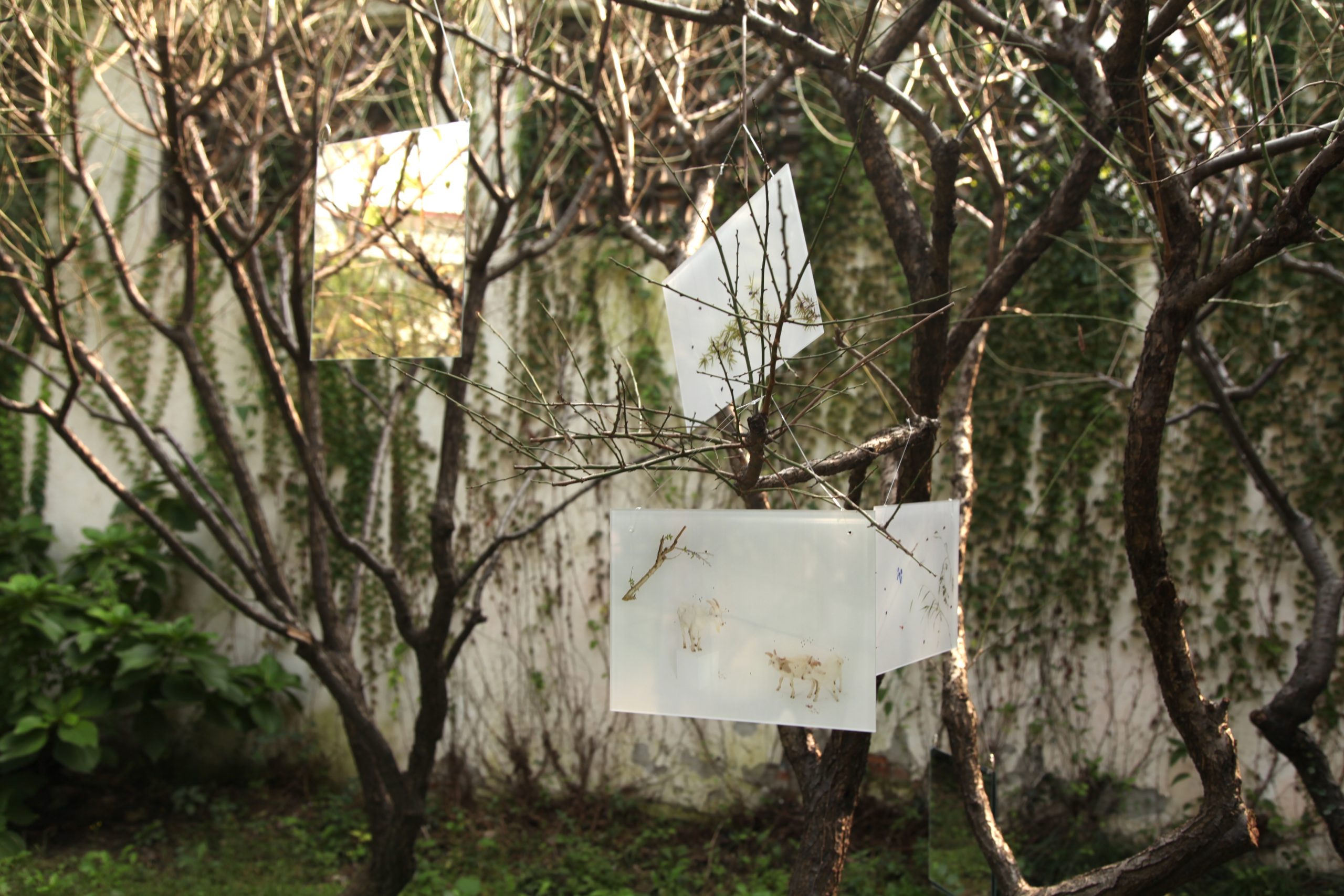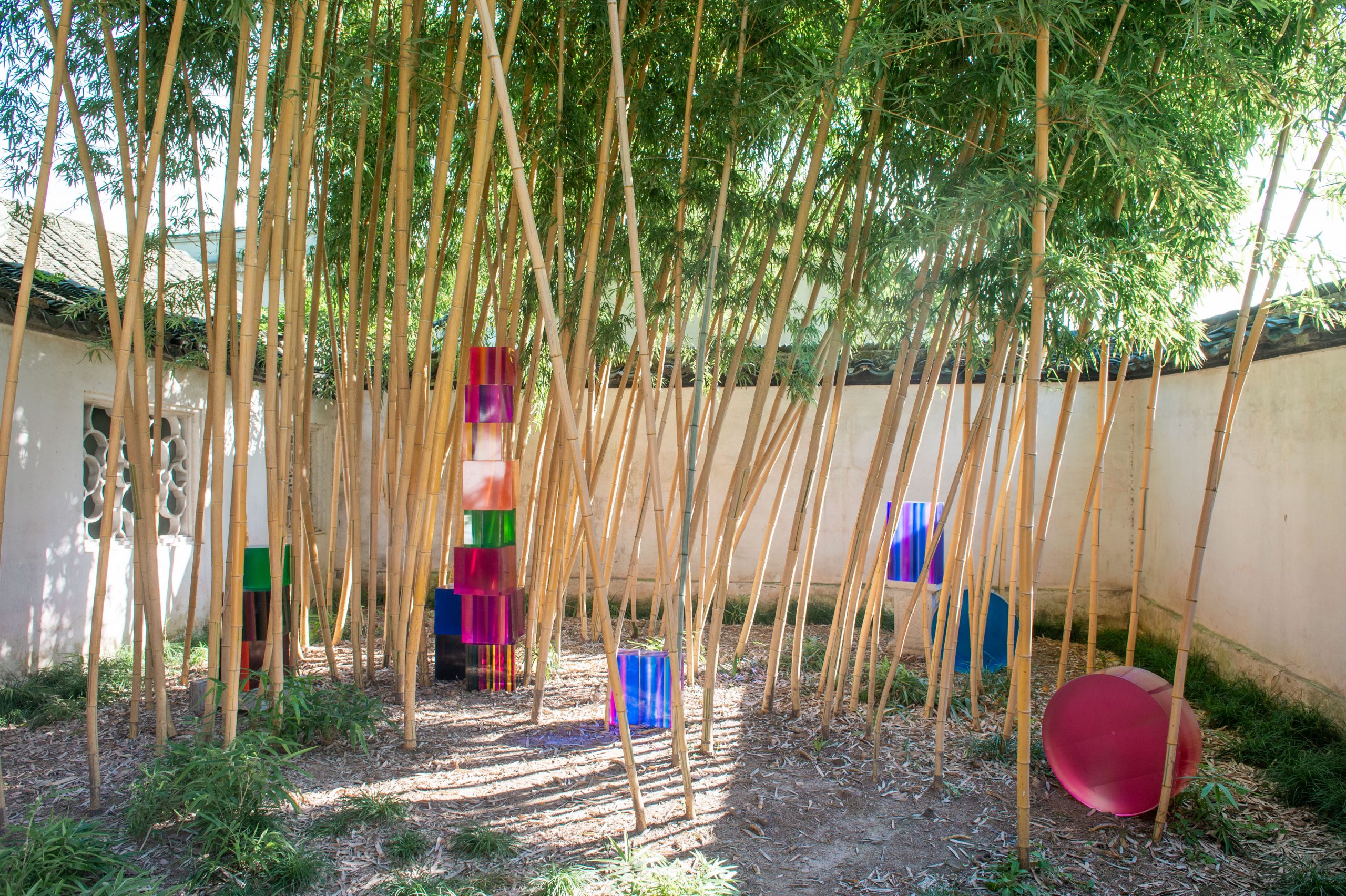 その伝統的な庭園を舞台とした芸術祭のキュレーターはフランス人のJérémie Thircuir。彼にとっては2020年に続き二度目のキュレーションで、2021年のテーマは「異界の古代パビリオン/Tales of the Ancient Pavilion」。より遊び心のある内容となっていました。彼によってもたらされた空間では、木に吊るされた紙飛行機形の磁器、口が90度ねじられ花が挿せないデザインの伝統的な花瓶、竹林の中の華やかな樹脂製の彫刻などによる視覚的な効果で、どこにでも異界が存在する可能性に気づかされます。
