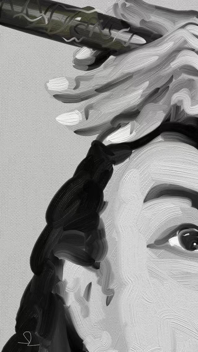 「上海の女性の骨格、内面と外見の調和というものは、上海がアジアナンバーワンの大都市になった頃からまったく変わっていません。彼女たちは鋭い洞察力、優れた戦略や方法論、並外れた情感、知性をもって男性を見ています」とサイモン。端正なルックス、繊細な内面、男性をコントロールする術を知っている、財産を重視するなど、上海の女性はさまざまに形容されてきましたが、これらのイメージが彼の絵にスピリッツを与えています。特に彼はタバコを吸う自立した雰囲気の女性を描くのが好きで、目の前で火をつける女性を見ると、すぐにそれを描きます。スマホがあればどこでもすぐに描けるのです。