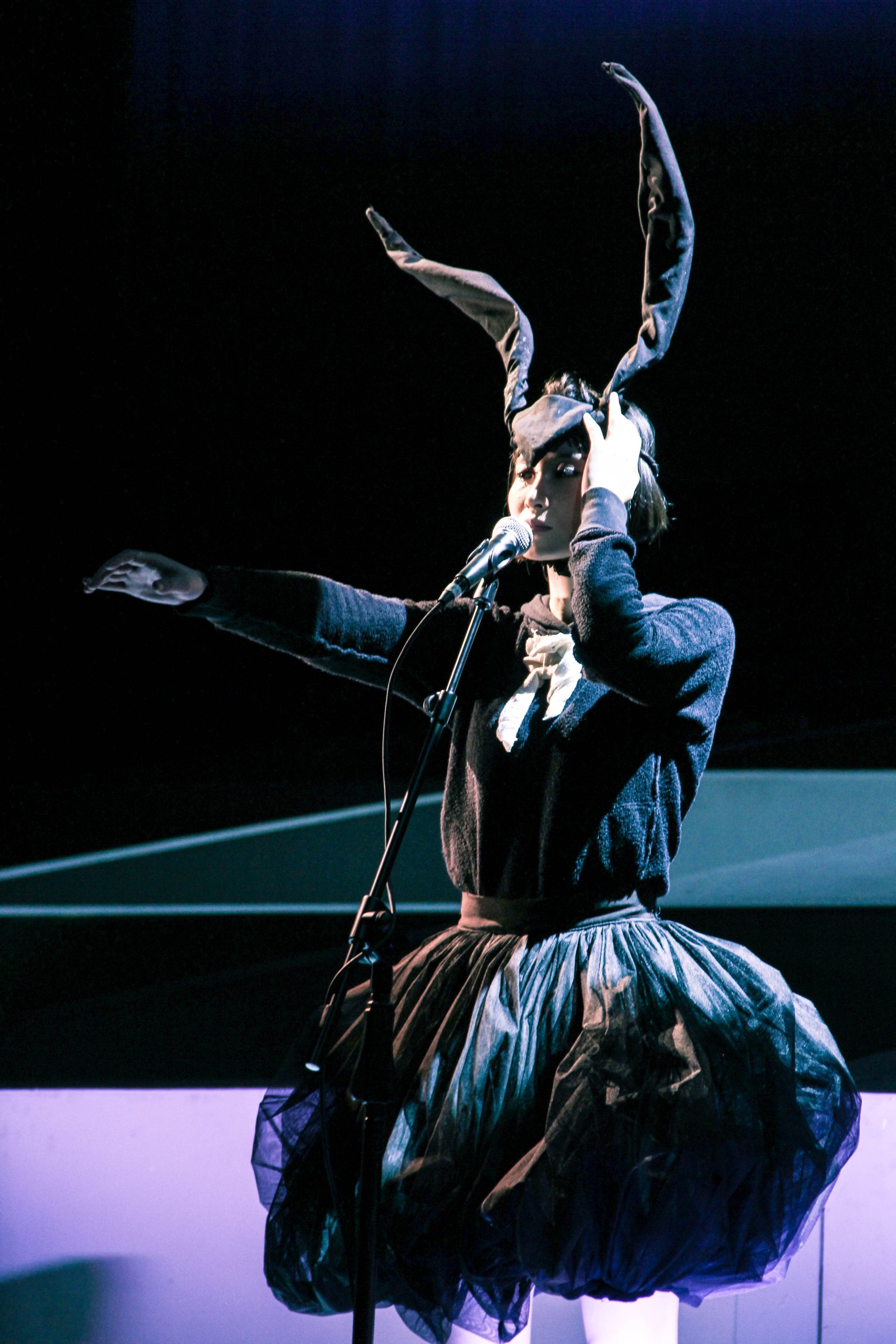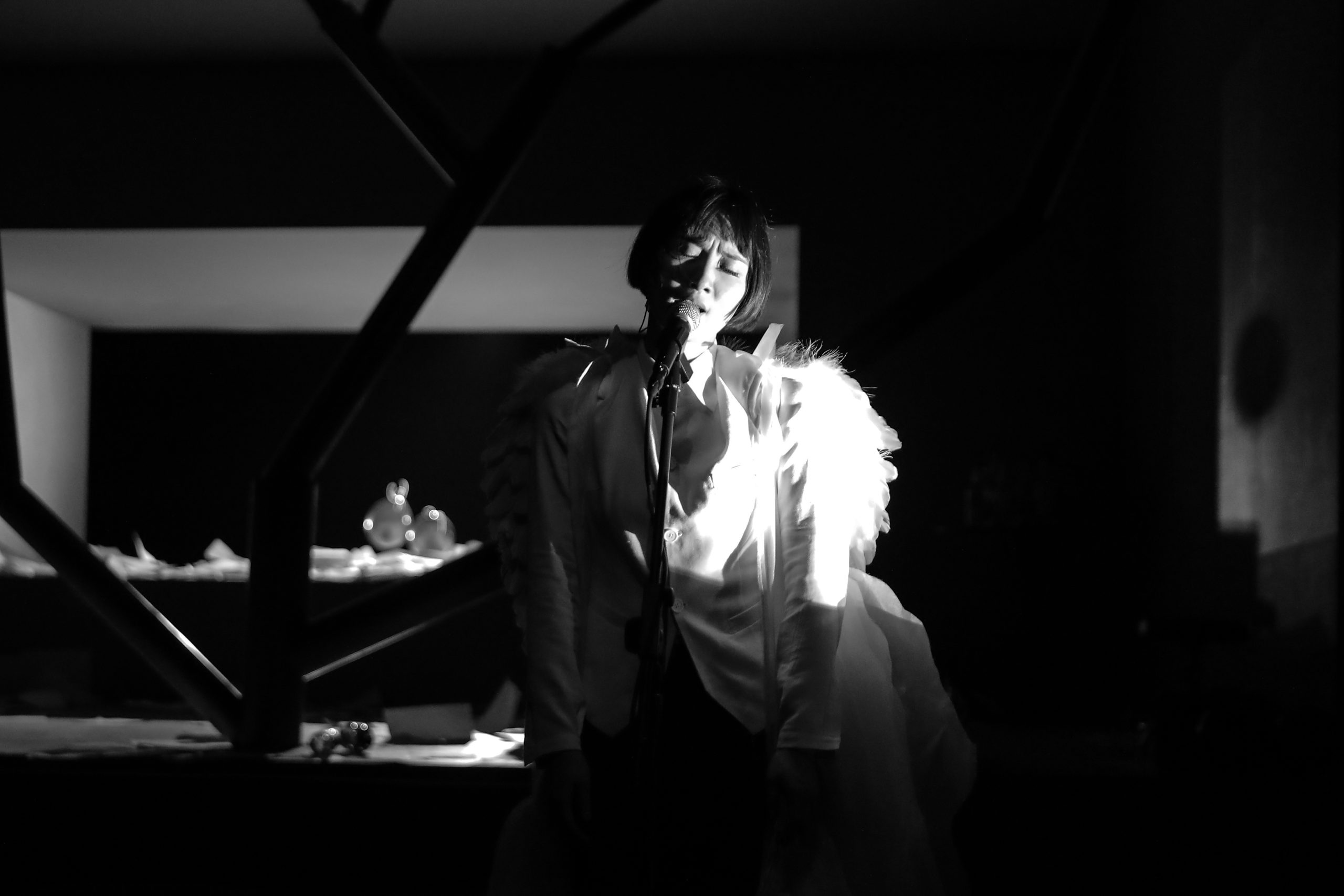 孟京輝の作・演出による『狐狸天使FOX ANGEL』は、リルケ、ブレヒト、コルタサルなどのテキストを断片的に参照した、まったく異なる5つの物語で構成されています。さまざまな人物の奇妙な人生が舞台上で交錯し、それぞれの不条理、悲痛、裏切り、ロマンなどを、黄湘麗はたったひとりで表現。その細やかでリアルな演技は、コロナ禍で長い期間不自由を強いられた観客の心を、しっかりと掴んでいました。
