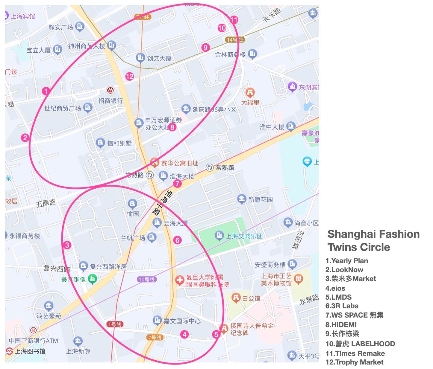 上海の旧フランス租界地のメインともいえる衡山路、復興路界隈には、スタイリッシュなショップが集まっています。特に長楽路、烏魯木斉中路、安福路、東平路、常熟路、延慶路などを含む2つの楕円形のサークル内に、ファッショニスタにおすすめのアドレスが点在していて、僕はそれを「上海ファッションツインサークル」と名付けました。このエリアにあるファッションブランドのショップやセレクトショップに暗黙の了解があるのかはわかりませんが、各店舗間は徒歩約2〜5分の距離があり、その配置はうまく調整され絶妙なバランスを取っているかのように見えます。今回は、この2つのサークル内のおすすめ店を紹介します。