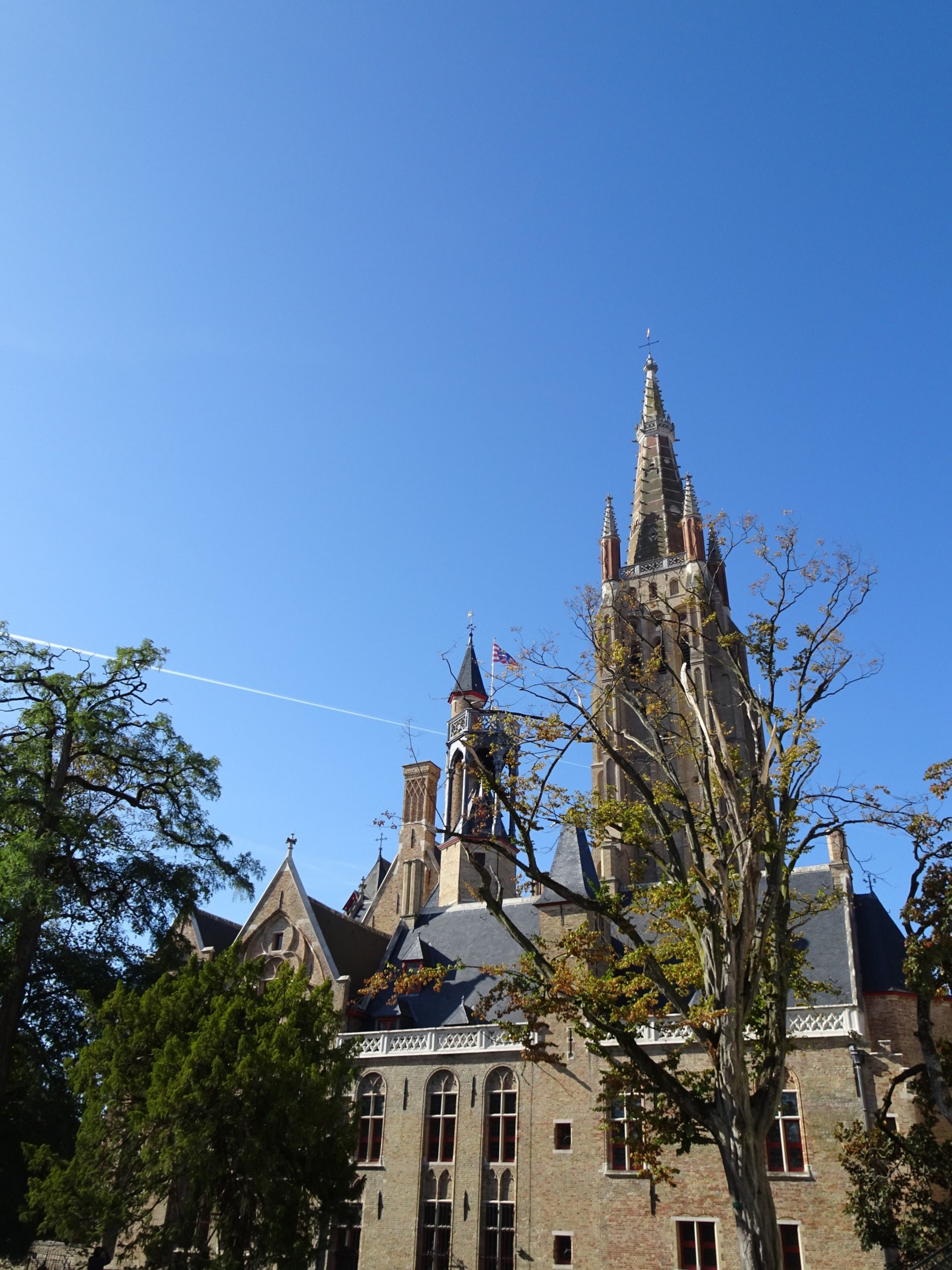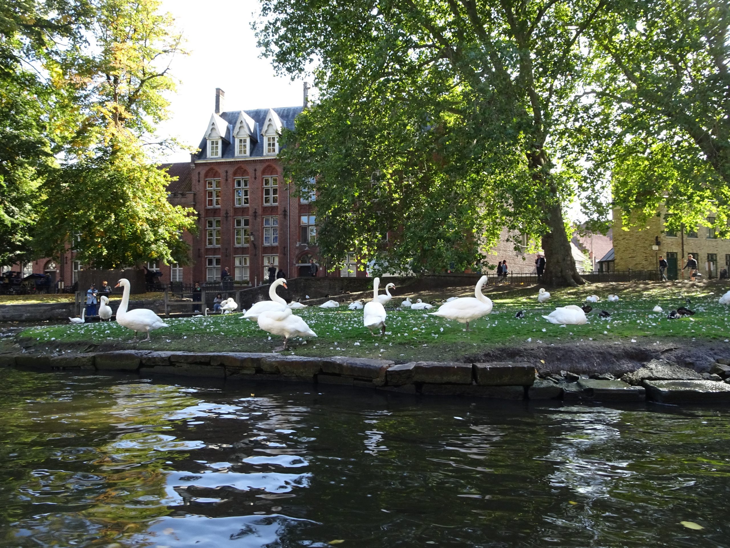 〈愛の湖〉と呼ばれるミンネワーテル(Minnewater)に続く運河沿いの建物は、17世紀に建て直されて、現在はベネディクト派の修道院となっています。Minnewaterのminneは、〈愛の〉とか〈奉仕の〉という意味です。