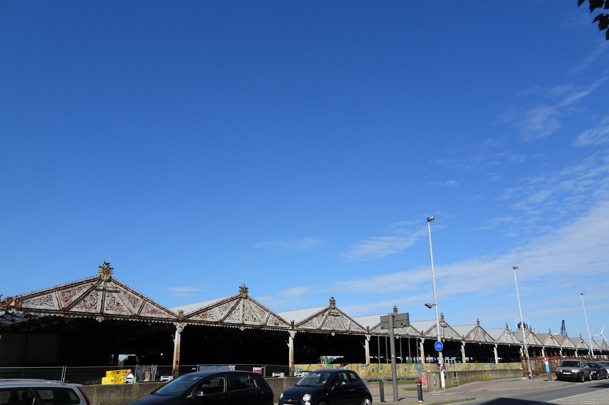 この建物はかつての港の一角にあり、ここも古い建物や新しい建物が、混在する地区です。港沿いの作業場の装飾でさえ、優美な曲線がかわいらしい。