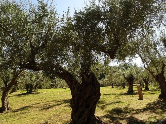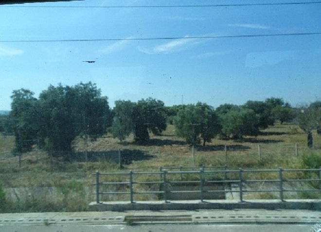 サレント半島を含むプーリア州はオリーヴ畑が広がり、オリーヴ製品の生産量はイタリア最大です。列車は、延々と広がるオリーヴ畑、ときには樹齢何百年もあるような木々の畑を、いくつも抜けていきます。