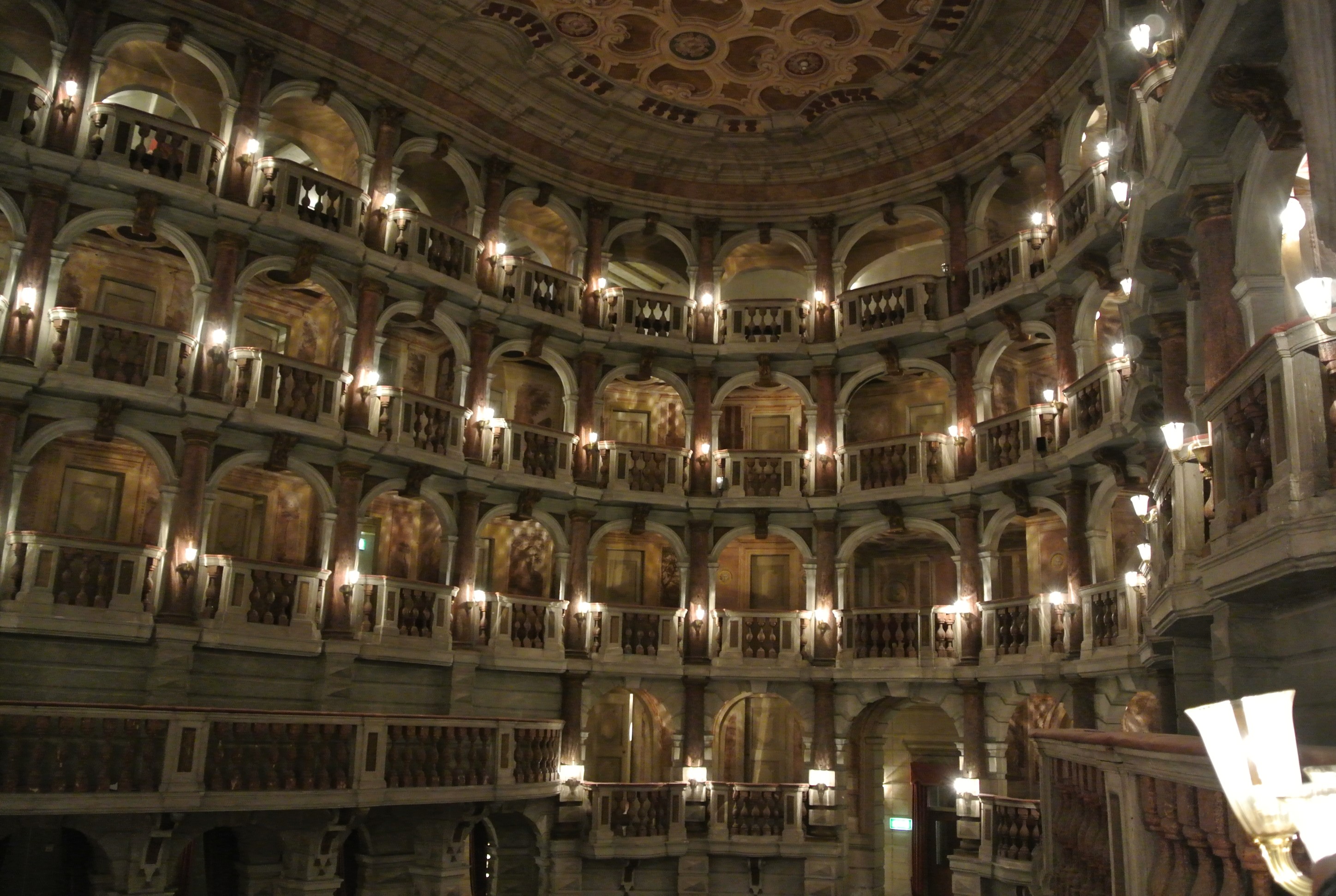 ギリシア時代を模してつくられた古代劇場(Teatro all’Antica)などもあり、ルネッサンス期の建築家の意気込みを感じます。劇場内にはオリュンポスの神々の像も飾られています。街は、小さなアテネとも呼ばれたそう。