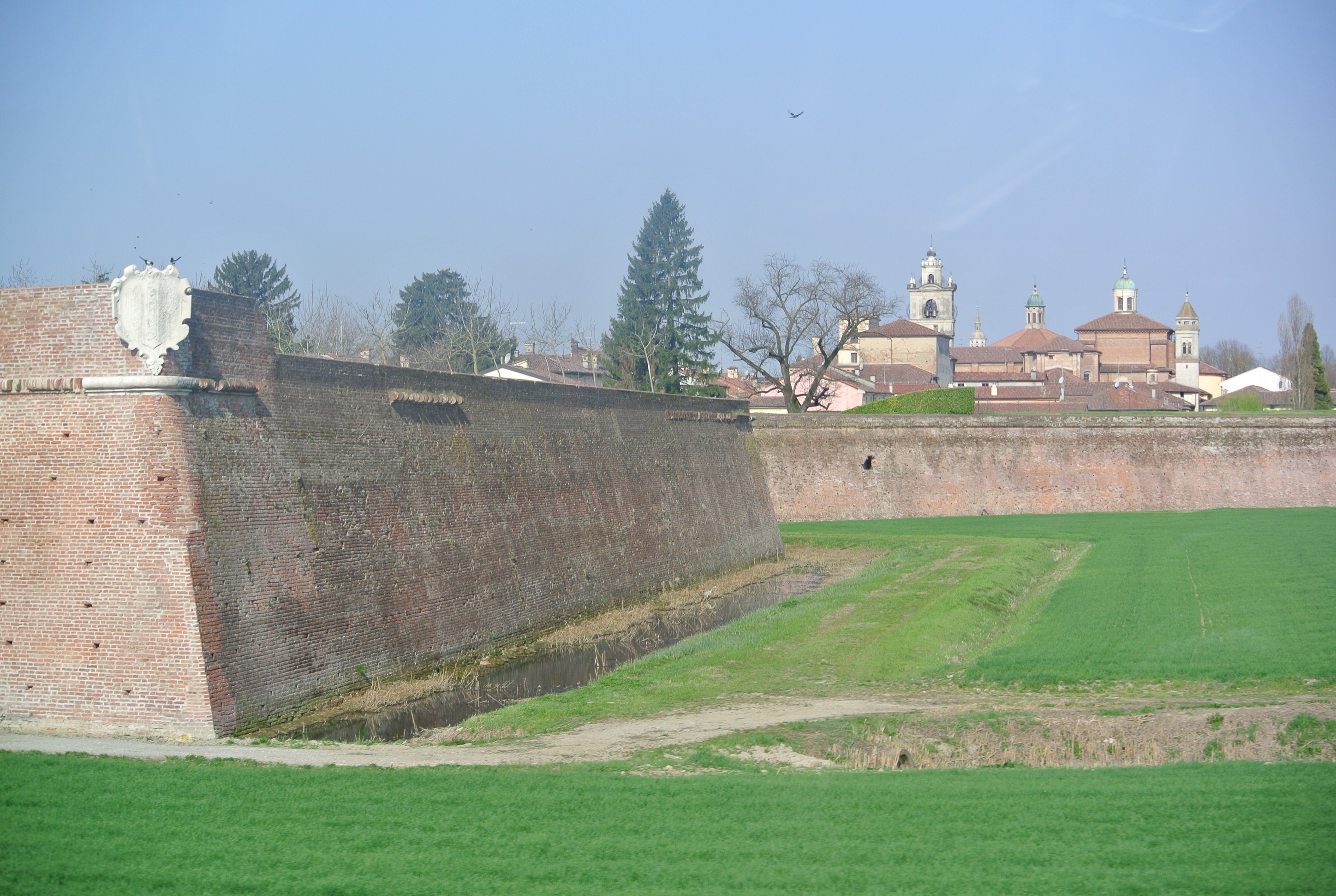 ところで、マントヴァを繁栄させたゴンザーガ家は、王子の居城都市として、近くにサッビオネータ(Sabbioneta)という理想都市をつくりあげました。マントヴァからバスでも1時間もかからないところです。田園のなかに、六角形の城壁が16世紀後半につくられたままの姿で現れます。