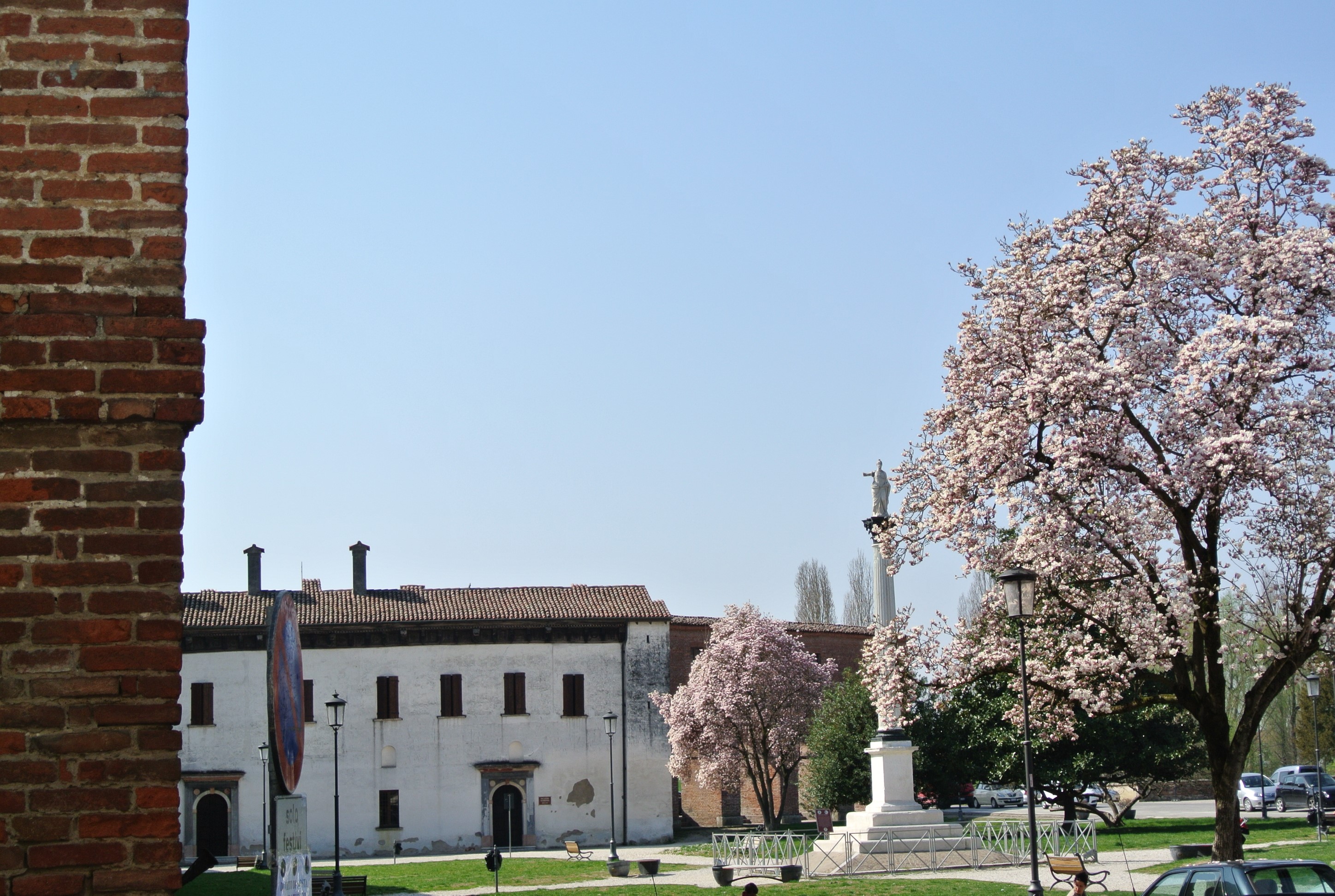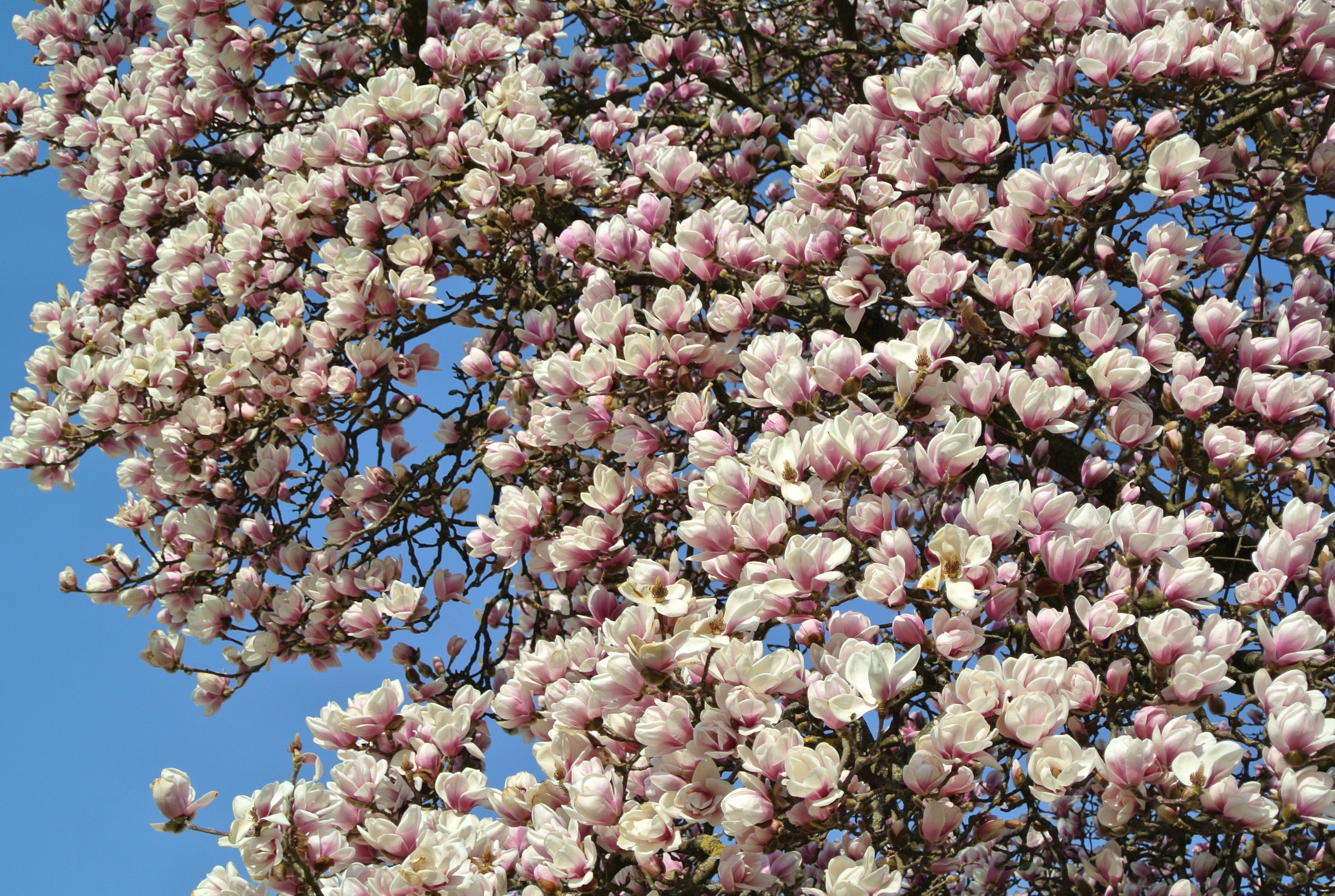 かつては、ここも王子に仕える騎馬が隊列をなして進んでいったことでしょう、と思うと、遥かな時間の流れに感慨深くもなりますね。角を曲がると、また別の広場にはモクレンが、春を歌いあげるかのように咲きほこっていました。