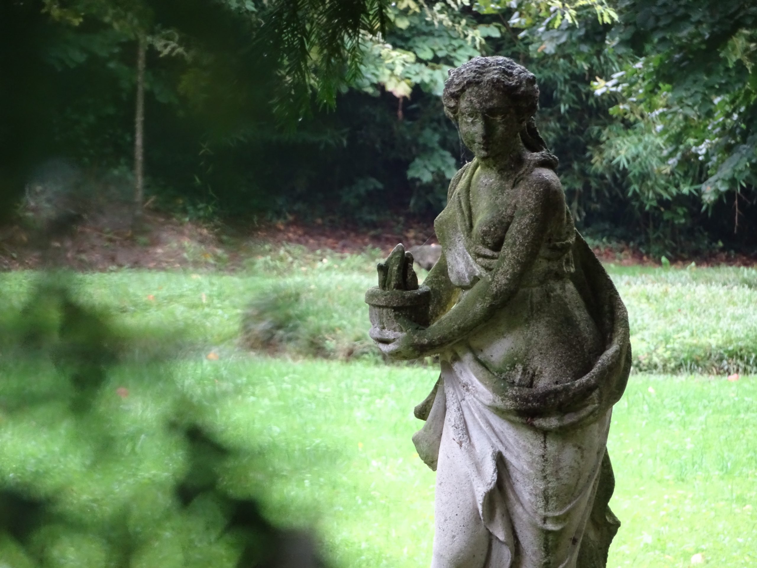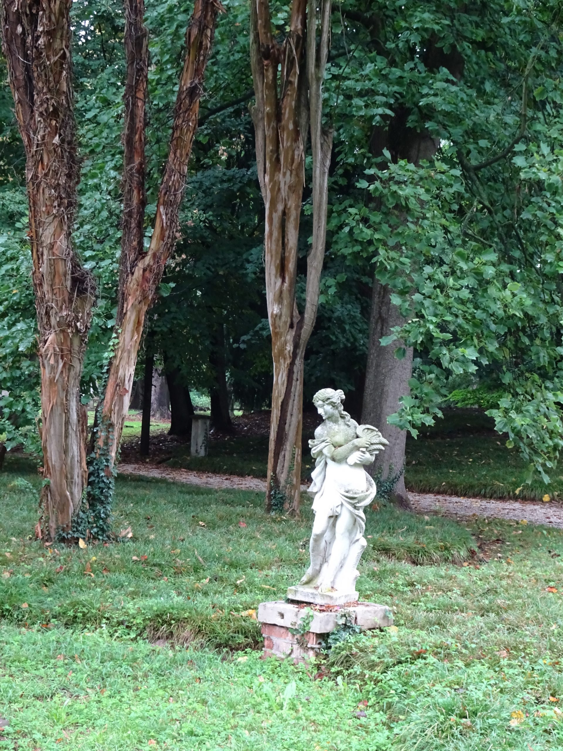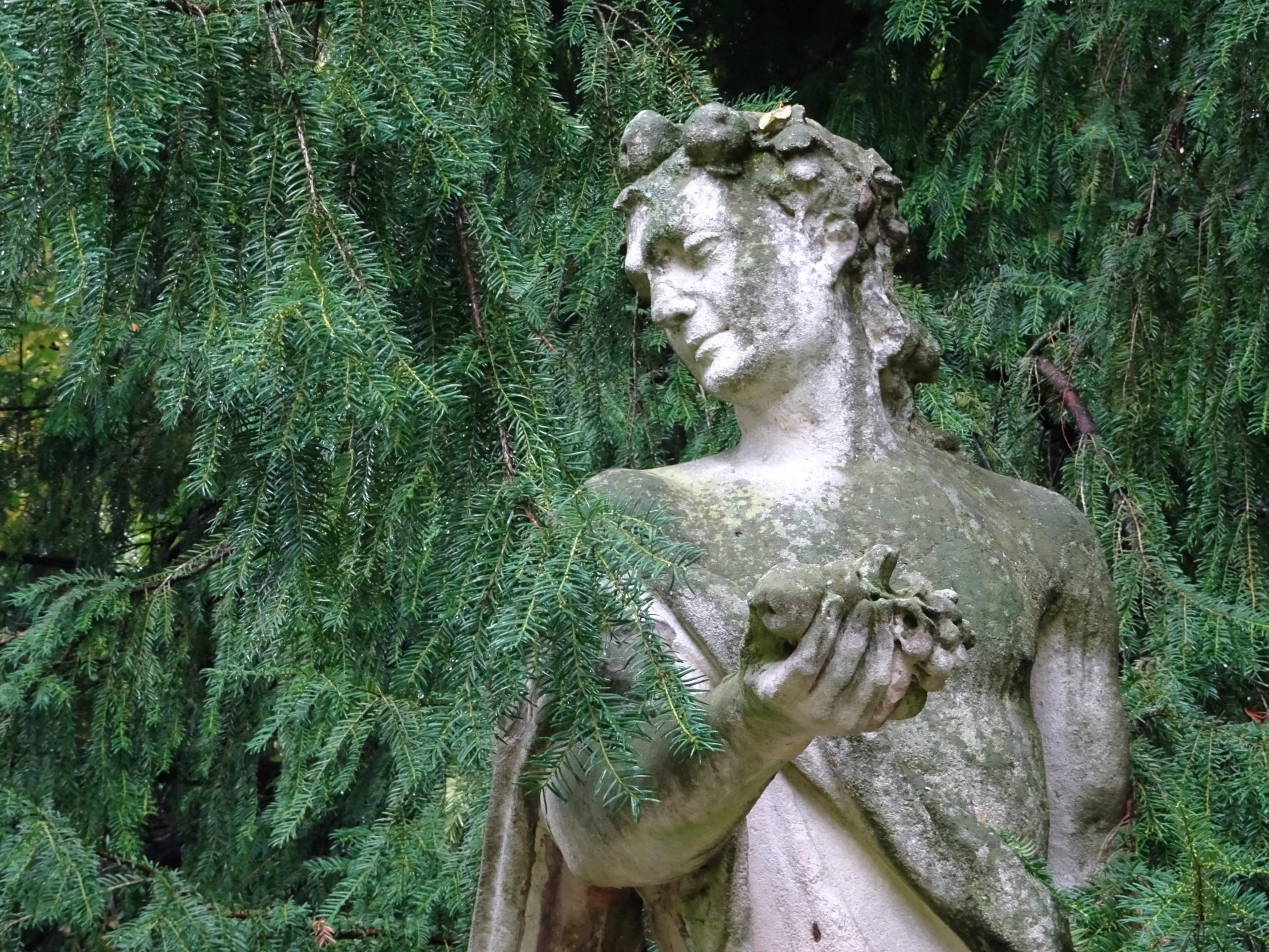 その広大な庭園には、植物に見え隠れして、あちらこちらに佇む彫像たちが!