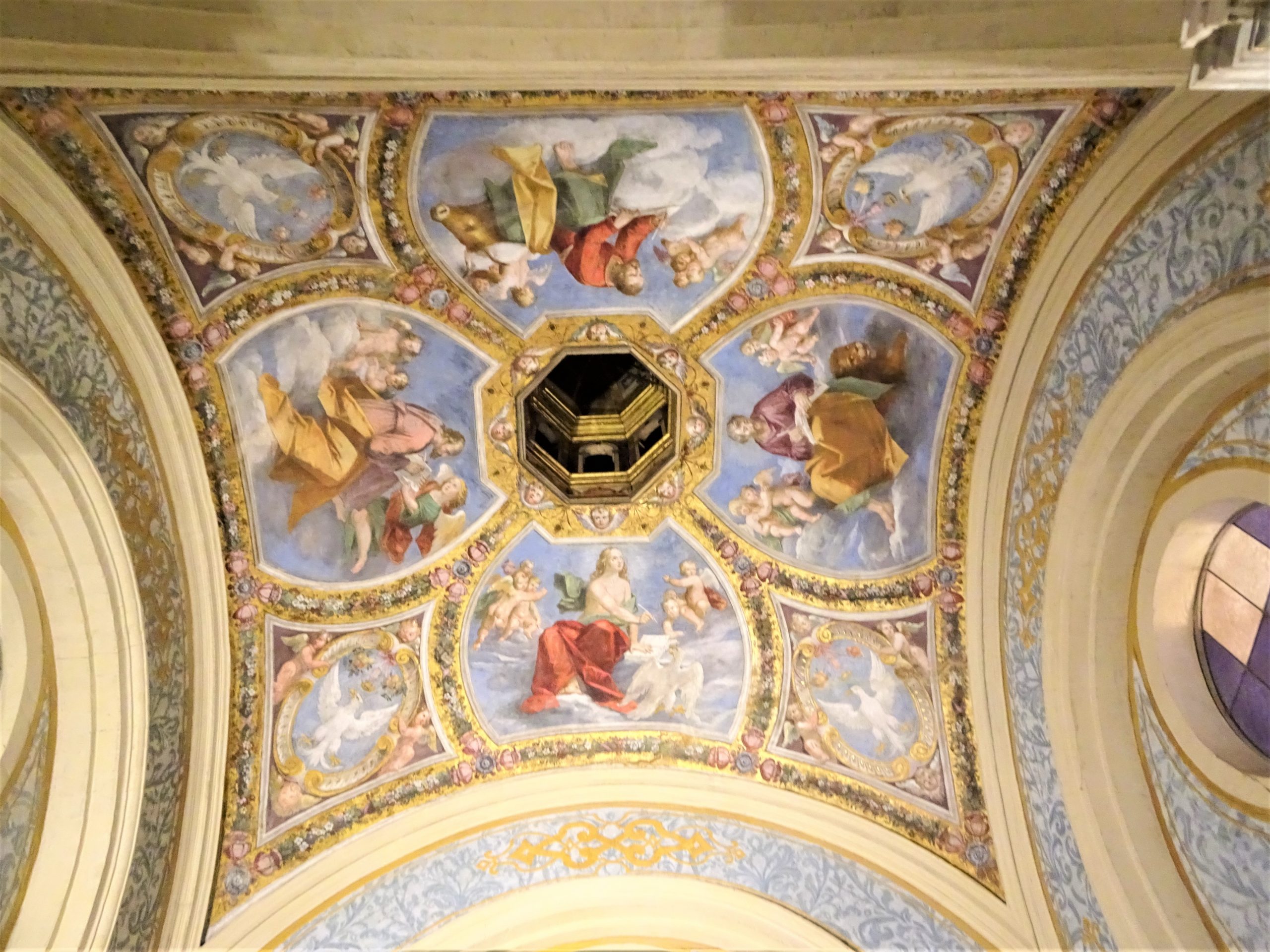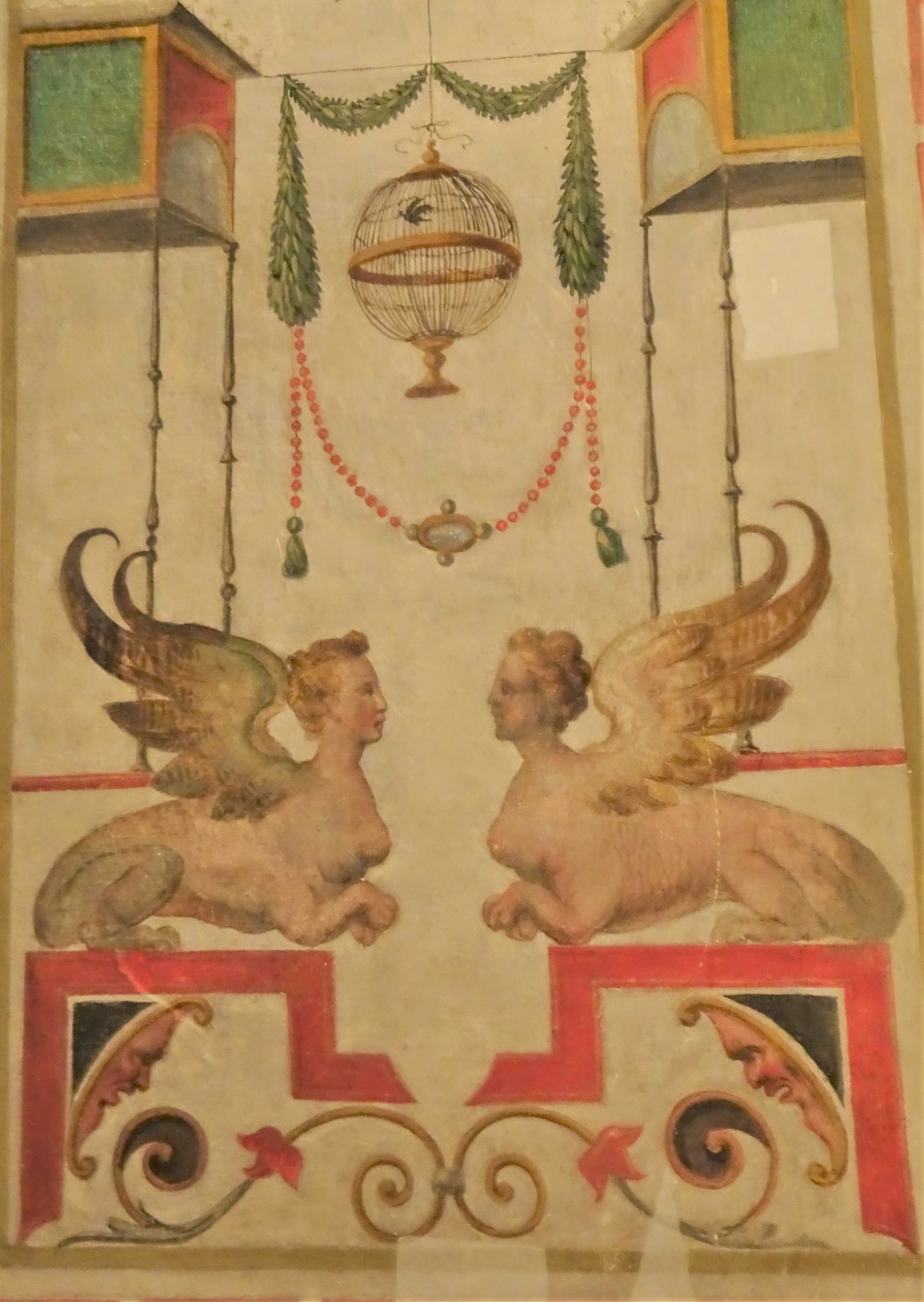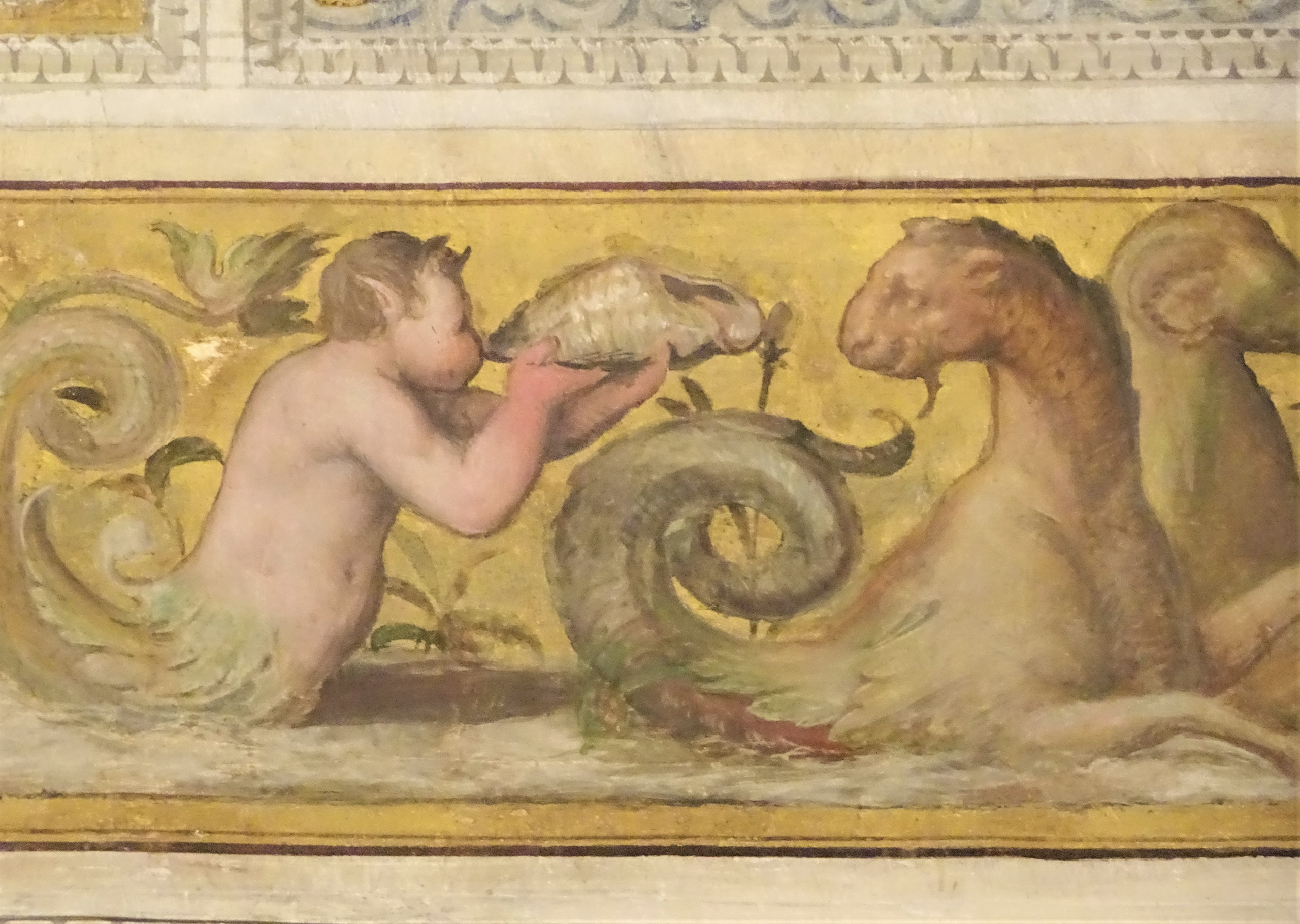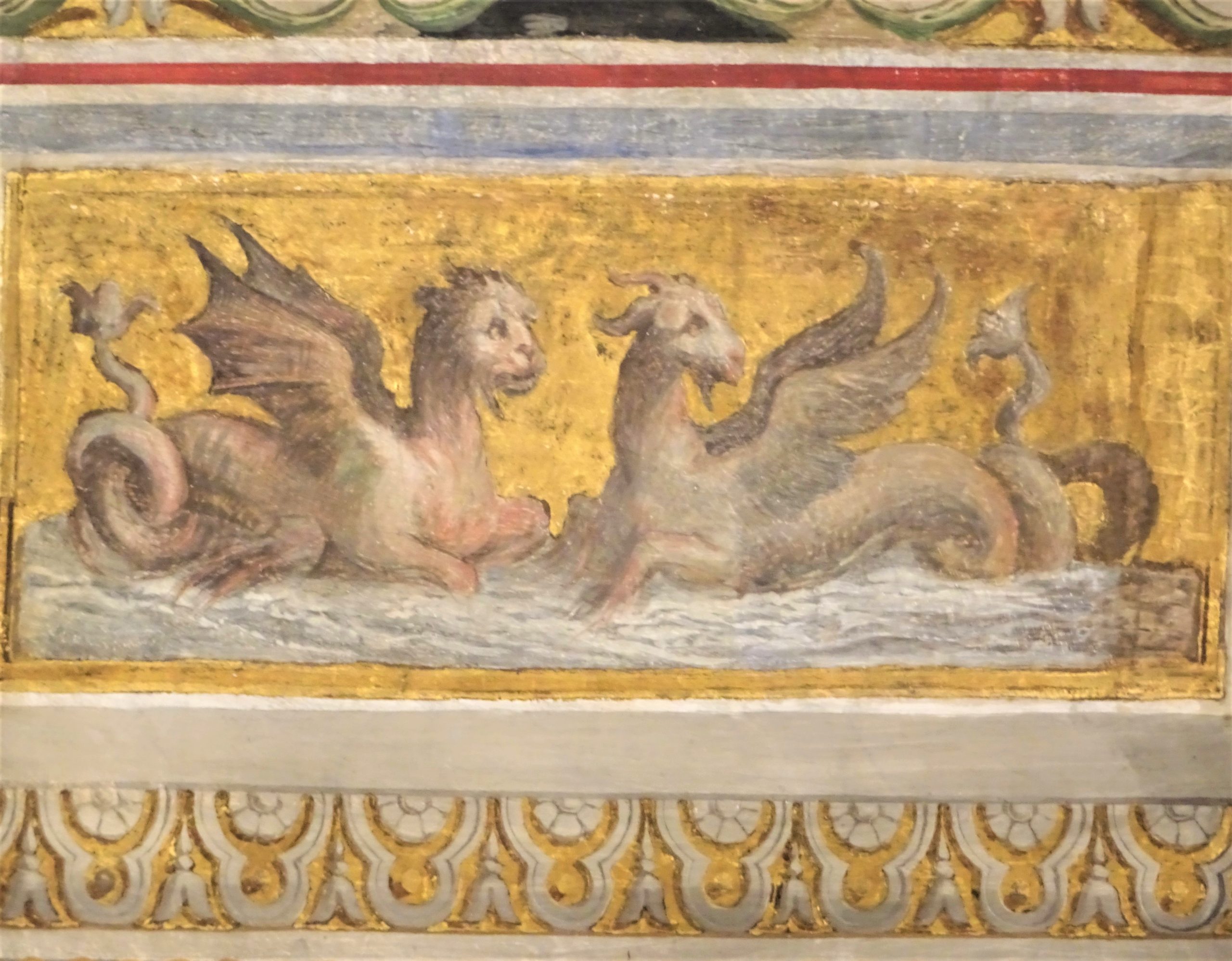 城内の壁画は趣向が凝らされていて美しい。フェッラーラは2012年のイタリア北部地震で大変な被害を受けて、エステンセ城の壁画も、あちこちに保護修復のテープが貼られているのが痛々しい。けれども豪奢な様に、ため息。
