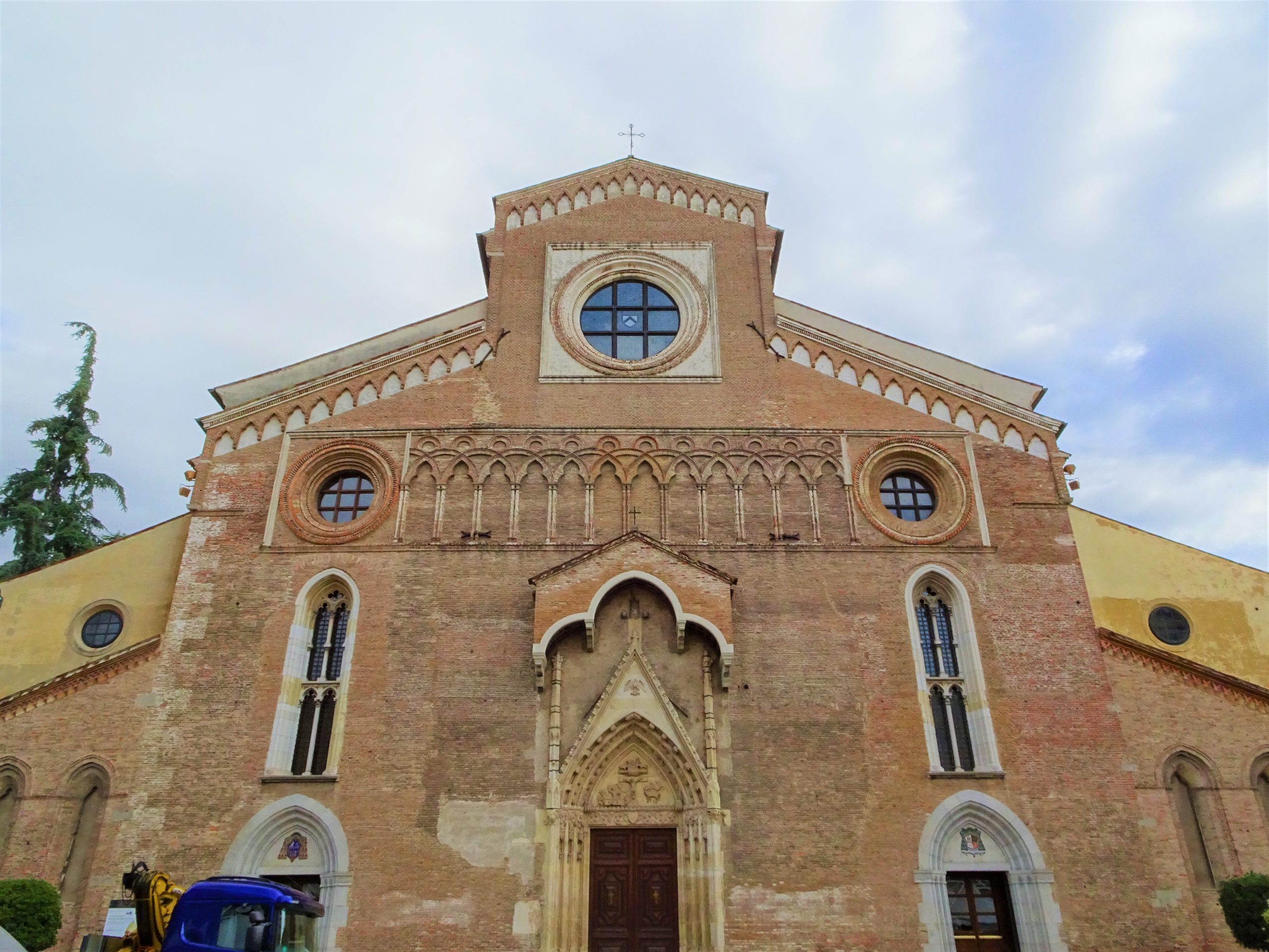 このファサードは、バラ窓が大きな窓から小さな窓に変えられました