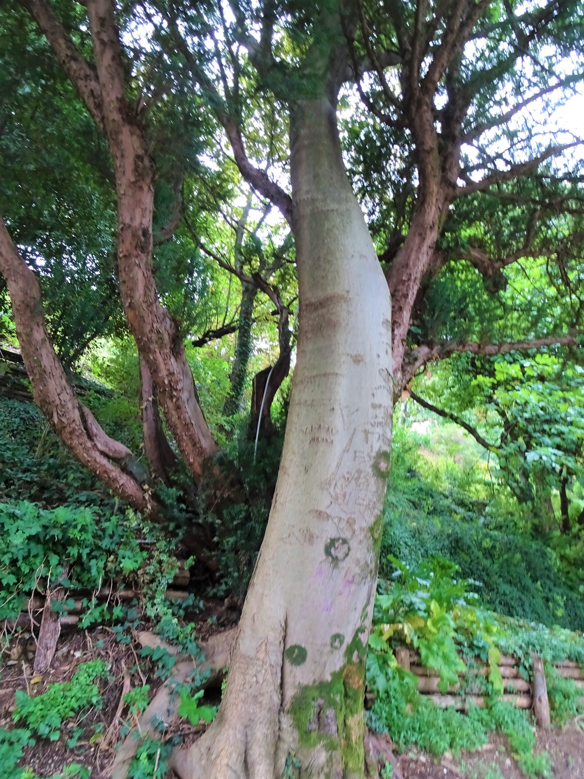樫の木がやって来る。パエトンの姉妹たちが変身したポプラたちも、やって来る。高い葉をつけた柏、しなやかな菩提樹、ぶな、処女(おとめ)ダプネがなり変わった月桂樹——それらも同類だ。それから、脆(もろ)い榛(はしばみ)、槍の柄(え)に使われるとねりこ、こぶのない樅(もみ)、たわわに実をつけるうばめがし、ひと目を楽しませるプラタナス、斑入(ふい)りの葉をもった楓(かえで)。さらには、川辺に生える柳や、同じく水を好む蓮(ロートス)、常緑の黄楊(つげ)や、ほっそりしたぎょりゅう、緑と黒の実をつける桃金嬢(てんにんか)や、黒いのしかつけない忍冬(すいかずら)が、つづく。まといつく常春藤(きづた)、巻きひげもつ葡萄樹、その葡萄樹に絡みつかれた楡(にれ)、ななかまど、えぞまつ、赤い実をつけた野苺(「苺」の字に、いちご)——そんなものも、オルペウスを慕い寄る。勝利者への賞となる、柔軟な棕櫚(しゅろ)、まるで髪を刈り上げたかのように、てっぺんだけが茂っている笠松も、同じだ。最後の、この松は、神々の母キュベレのお気にいりだが、それは、彼女の寵(ちょう)をうけたアッティスが、人間の姿を捨ててこの木となり、あの固い幹に変じたからだ。」(岩波文庫『変身物語』よりそのまま引用、カッコ内は原文でのフリガナ)