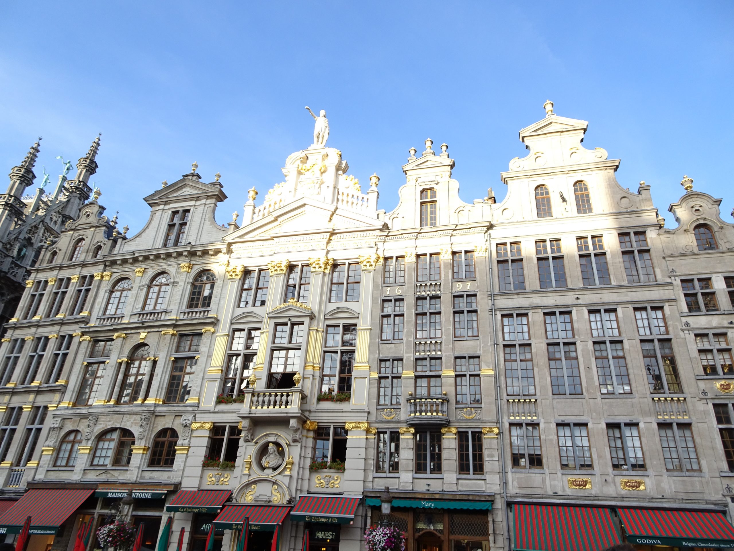 広場をとりまく建築はどれも絢爛豪華で、ブリュッセルの繁栄した華やかな歴史をまざまざと見るようです。ここは13世紀頃から市がたち、その後商人たちの職業別のギルド(組合)が集まった場所でした。
