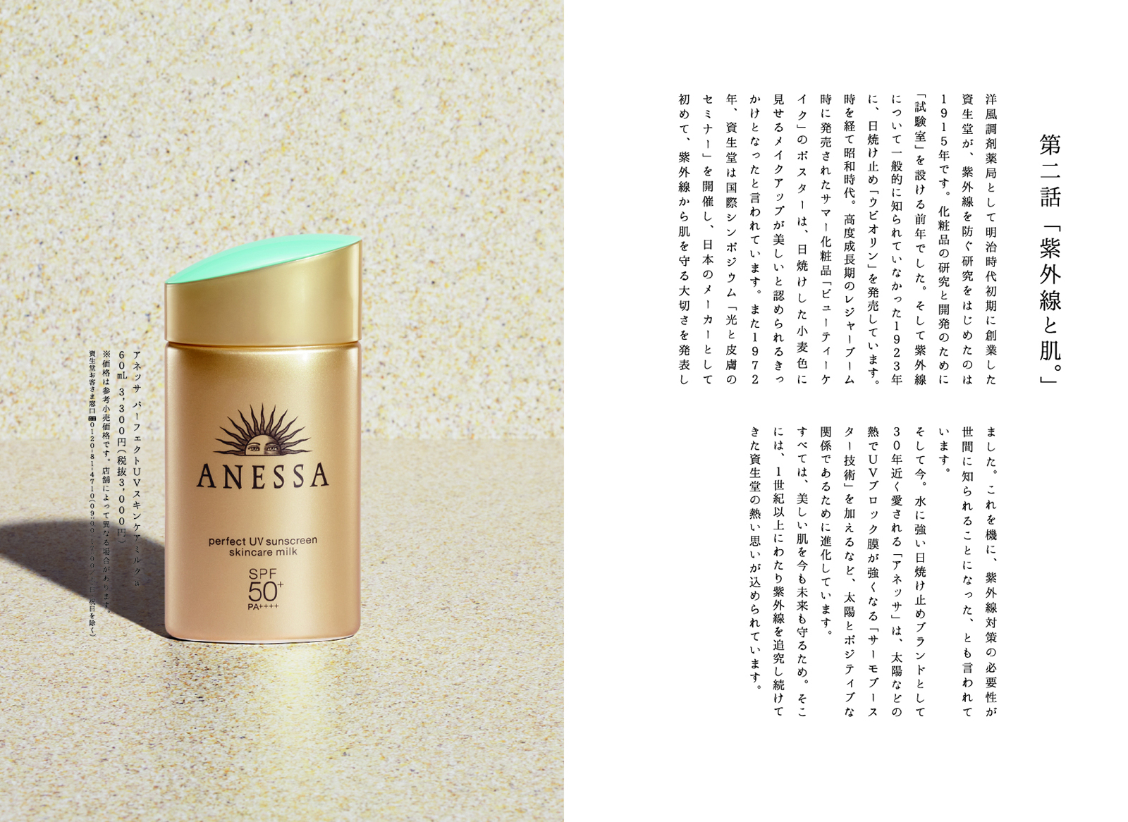 そして今。水に強い日焼け止めブランドとして30年近く愛される「アネッサ」は、太陽などの熱でUVブロック膜が強くなる「サーモブースター技術」を加えるなど、太陽とポジティブな関係であるために進化しています。