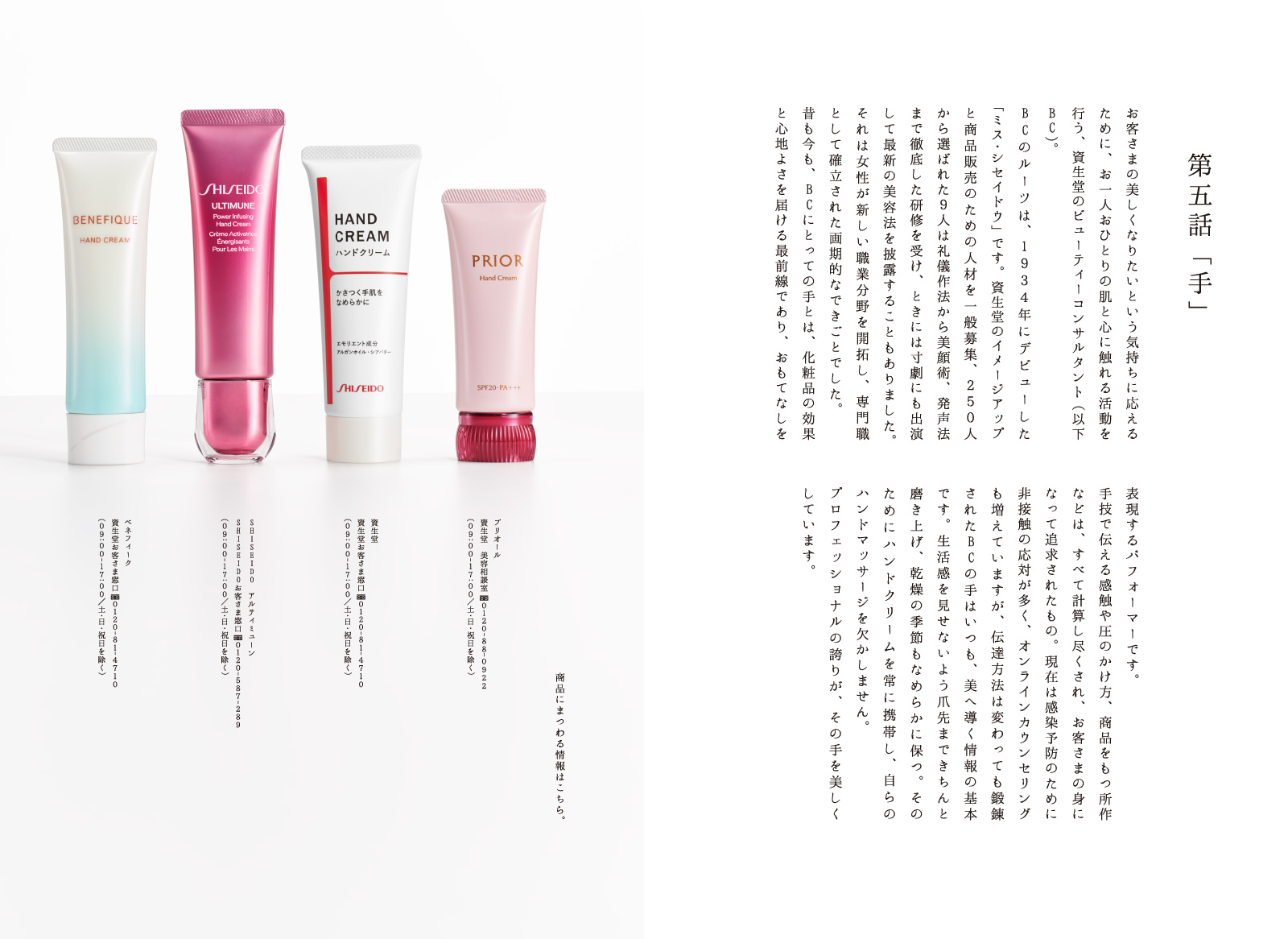 昔も今も、BCにとっての手とは、化粧品の効果と心地よさを届ける最前線であり、おもてなしを表現するパフォーマーです。